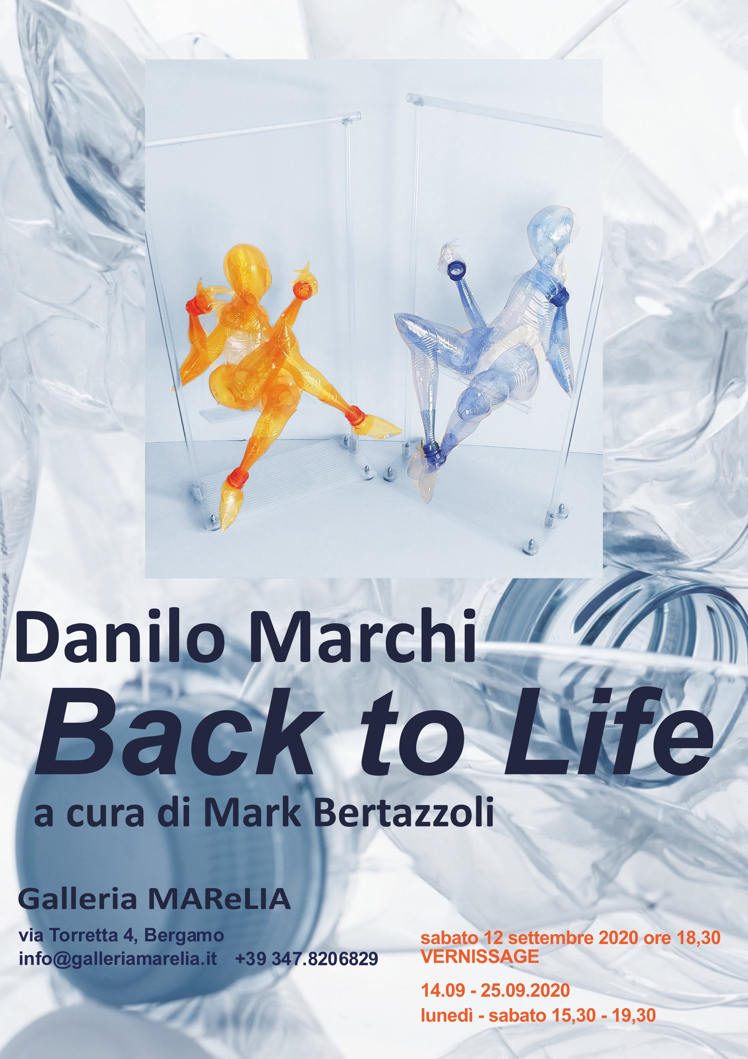 La mostra prende avvio con Back to Life, grande installazione a pavimento di sculture “plastiche” realizzate assemblando e manipolando bottiglie di plastica trasparente riciclate (PET). Back to Life reca con sé un’indicazione visibile di “rinascita” e la scelta di Bergamo per la presentazione dell’opera non è certamente casuale. La città lombarda è stata, infatti, uno dei luoghi più duramente colpiti dal coronavirus, tanto da essere riconosciuta come luogo simbolo di una tragedia nazionale che ha lasciato tutti turbati e sgomenti. Danilo Marchi, sensibile artista che intende «rappresentare il momento storico che stiamo vivendo», vuole far pervenire, attraverso quest’opera, un chiaro messaggio di buon auspicio per un ritorno a una vita un po’ più spensierata.