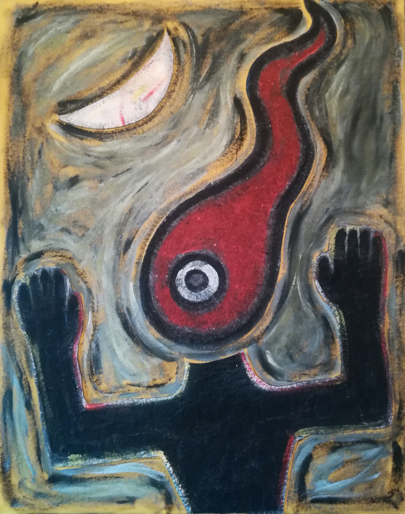 Su tela, juta o stoffa, i dipinti e i collage delle figure archetipe femminili di Danio Migliore, che devono tanto alle antiche divinità e all’essenza del femminino, fulcro dei suoi interessi e del suo percorso filosofico e spirituale.