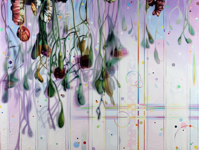 combina pittura figurativa e astrattismo geometrico con precisione fotografica, in composizioni dal