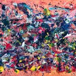 Le 50 opere su tela, che Bosano espone da GULLIarte , sono di pittura astratta, che si riferiscono a una rivisitazione dell’Action Painting americano, del secondo dopoguerra.