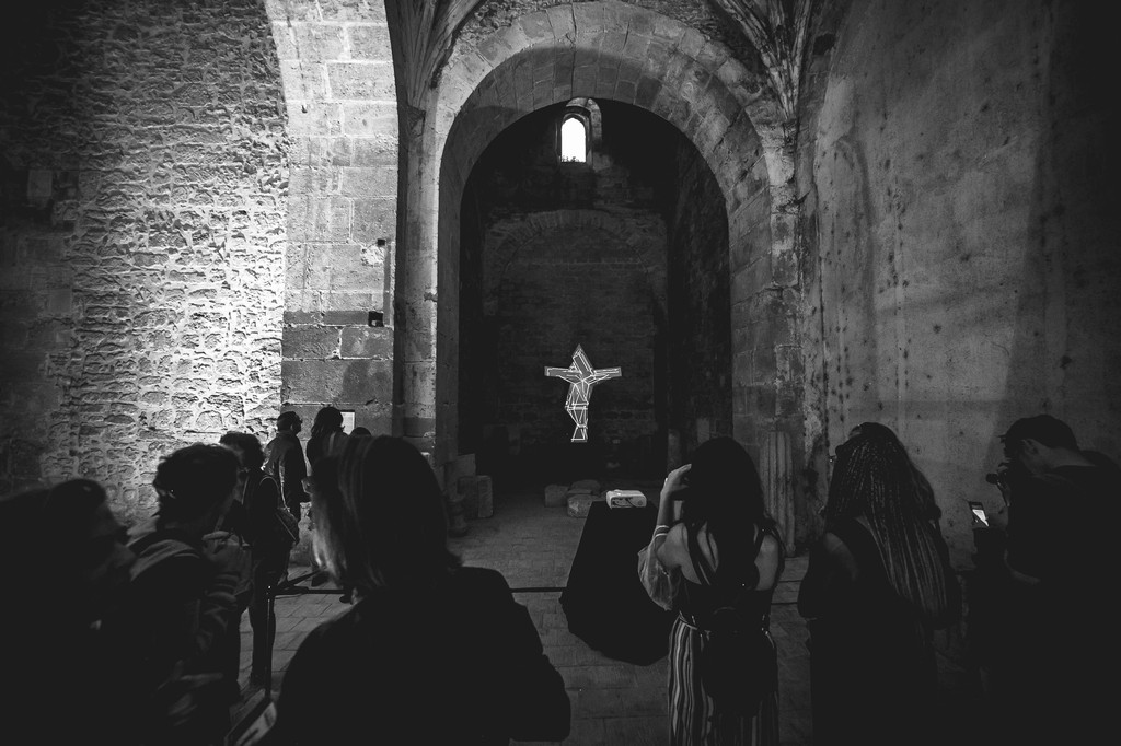 L’opera, presentata alla chiesa di santa Maria dello Spasimo come evento collaterale di Manifesta12 e #anteprima I-design, trova nuovo allestimento in un altro suggestivo monumento, la cripta di san Matteo, luogo di sepoltura di artisti quali Vito D’Anna (1718-1769) e Giacomo Serpotta (1652-1732).
