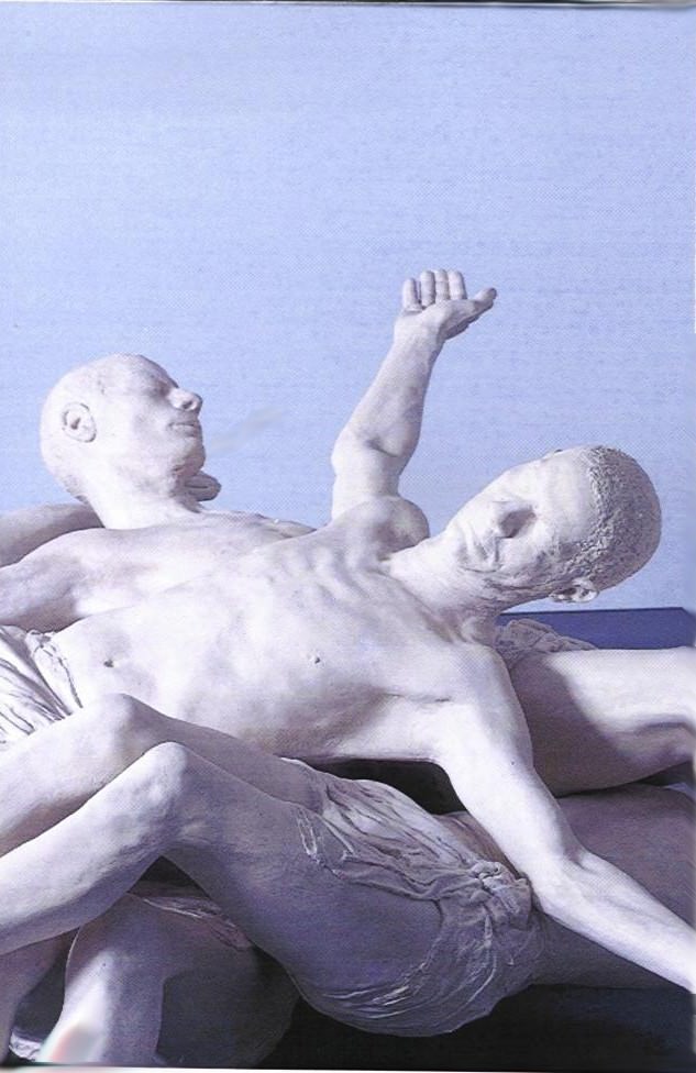 La rigidità dei corpi, sovrapposti a formare un cumulo, offre un’immagine drammatica che si esalta e diviene inquietante quando, al buio, si scoprono quegli stessi corpi emanare una luce fredda che non produce ombre.