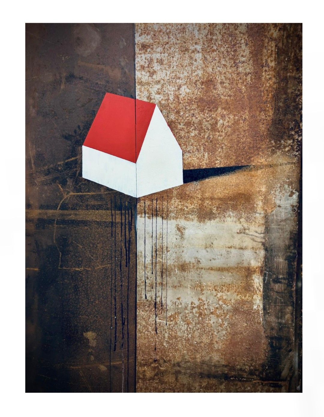 Il titolo della mostra è carico di una doppia interpretazione: in lingua italiana, suggerisce un’idea di isolamento e distacco, mentre in inglese evoca intimità e introspezione. Giancane, con una visione profondamente riflessiva, cattura l’essenza di un mondo in trasformazione, anticipando un futuro che sembra già intravedersi nei segni del presente. Utilizzando lamiera ferrosa come materiale principale, l’artista crea opere che raccontano la continua ossidazione della natura, simbolo di un cambiamento in corso, ma anche di una possibilità di rinascita. La figura ricorrente della “casetta senza porte né finestre” diventa simbolo di un rifugio chiuso, ma anche di un potenziale nuovo inizio, che ci invita a riscoprire la connessione con ciò che ci circonda, prima che sia troppo tardi. È una riflessione che guarda al futuro, alla condizione dell’essere cosciente in un mondo che sta cambiando, ma che Giancane riesce a "prevedere" con straordinaria chiarezza e sensibilità.
