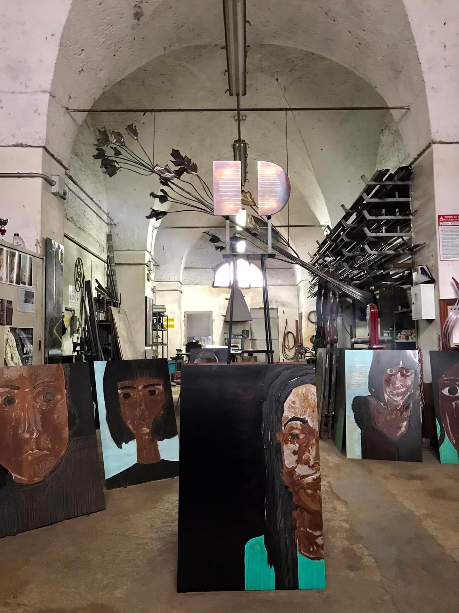Per comprendere pienamente l’origine di un volto è necessario far ri-emergere l'elemento antropologico, basandosi sulla rappresentazione e sull'analisi degli stati d'animo, dei sentimenti e delle passioni umane, in esso contenuti, fissando i pensieri, i silenzi e le pulsioni sul metallo, al di là delle facili e superficiali urgenze visive, attraverso l'interazione primigenia che annoda lo sguardo umano alla psiche e alla storia stessa dell’individuo rappresentato. Tale è l’intenzionalità dell’artista Dario Giancane che rappresenta l'immagine del volto nella forma dell’icona bizantina, lavorando sulla lastra d’acciaio che diviene il non luogo ove oltrepassare i limiti della materia grazie alla quale si manifesta non solo la dimensione antropologica del soggetto ritratto, ma anche la stratigrafia emozionale, gli eventi e le storie che nell’ossidazione del metallo divengono il presente di un passato sonoro. Questo laico ritorno al ritratto, alla rappresentazione di altro rispetto agli occhi della pandemia mascherata e menomante, pare diventare il senso dell’azione e un mezzo per fare, “ποιέω”, un volto, “πρόσωπον”. Una prosopopèia necessaria dunque, per ripensare la rappresentazione, donare una possibilità di accesso a una domanda, sfiorando la verità del soggetto rappresentato. Prosegue Giancane e al contempo trasforma cavando materiale inerte dalla tradizione di un passato greco che intorno al volto ha fissato solo momenti personali. Un tempo che non può non essere narrato se non con le rimanenze di eventi collettivi ed intimi, di cui le immagini esulano dal presente abusato, per cogliere il senso più profondo della nostra esistenza. Ogni volto è dialogo e silenzio. Le stentoree pennellate, l’ossidazione del metallo, i solchi cromatici, sono arature che lasciano il segno dell’istante del dialogo instaurato tra l’artista e i modelli involontari del risultato e della volontà della materia. Il risultato è inaspettato e cerca di raggiungere la misura del soggetto che la impone, cioè in relazione all’esperienza dialogica che, per ogni prosopopèia, l’artista e l’individuo concepiscono. In Giancane non resta che l’utopia del controllo della reazione chimica tra acidi, metallo, pigmenti e materia. Egli concede a se stesso solo l’ardire dell’accesso alle persone, le sfiora e le legge donando in tal modo una forma del volto di cui non sarà essenziale esporre i sospetti, il nome, il tempo se non l’individualità che nel volto si manifesta. L'immagine, che con Warburg diviene strumento d'indagine della psicologia di un'epoca, con Giancane è chiaramente il risultato di quella universalità senza tempo degli incontri e delle possibili reazioni chimiche che piombano quando gli individui si attraggono o si confondono.