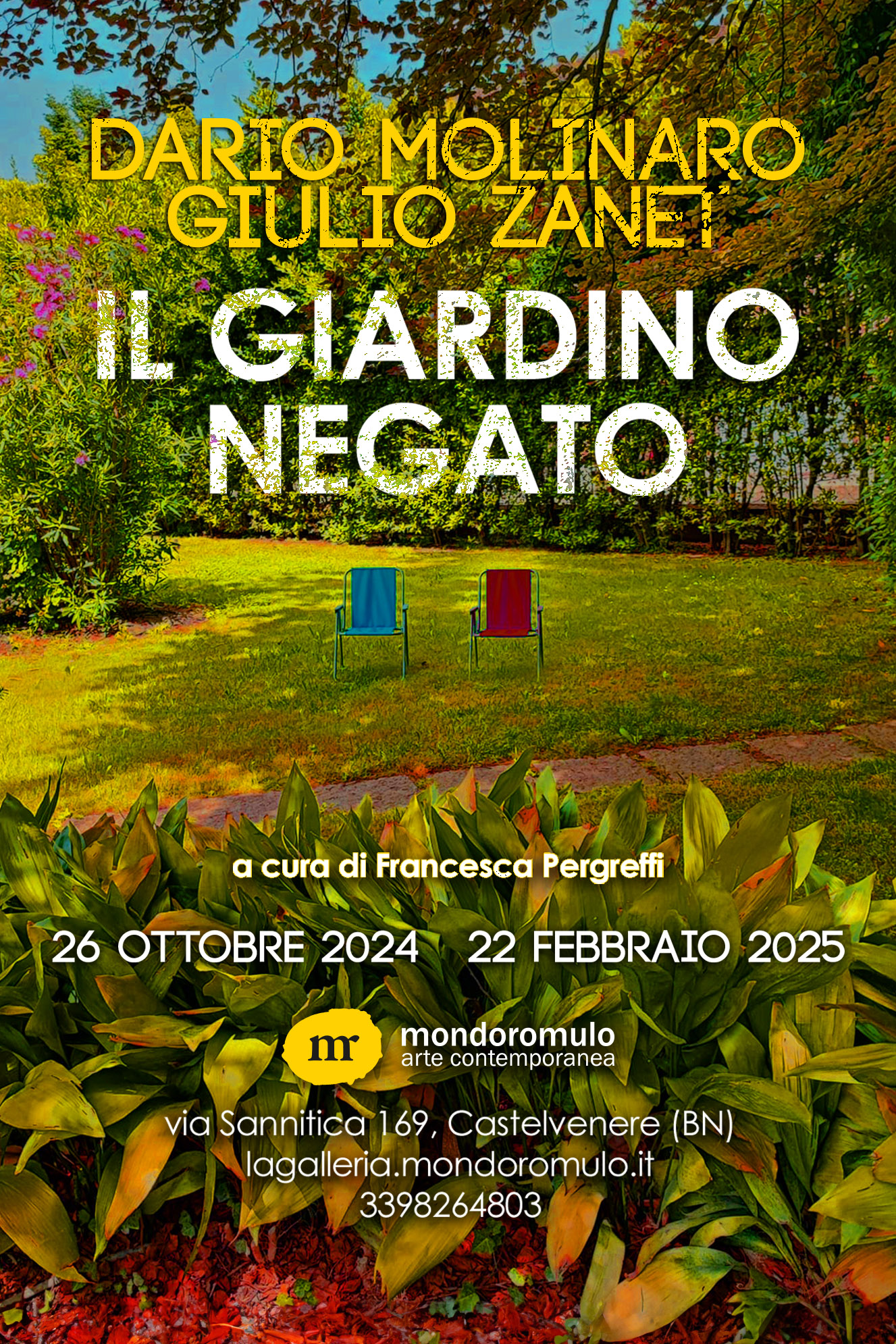 Dal 26 ottobre al 22 febbraio la galleria Mondoromulo arte contemporanea ospiterà la doppia personale di Dario Molinaro e Giulio Zanet, curata da Francesca Pergreffi, dal titolo “Il Giardino Negato”.