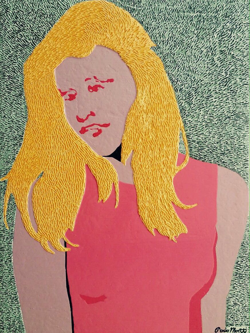 I quadri che ne nascono sono anche un po’ scultura, con i toni sgargianti e un po’ vintage che ricordano quelli dei mobili in formica degli anni ’60, con fantasie optical che appagano la vista. Dei ritratti, in sostanza, che vanno oltre la pittura e, pur mantenendo l’esclusività del pezzo unico, diventano complemento d’arredo.