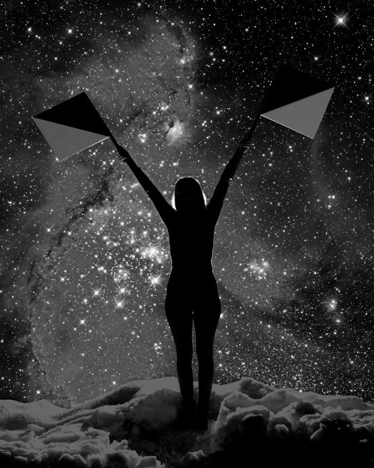 La DeNike inoltre presenta anche una installazione composta da diciotto fotografie dal titolo: “What do you believe in” nelle quali l’artista immersa nel buio siderale del cosmo, formula un segnale d’aiuto utilizzando l’alfabeto della marina che si serve di bandierine per scandire ogni lettera.