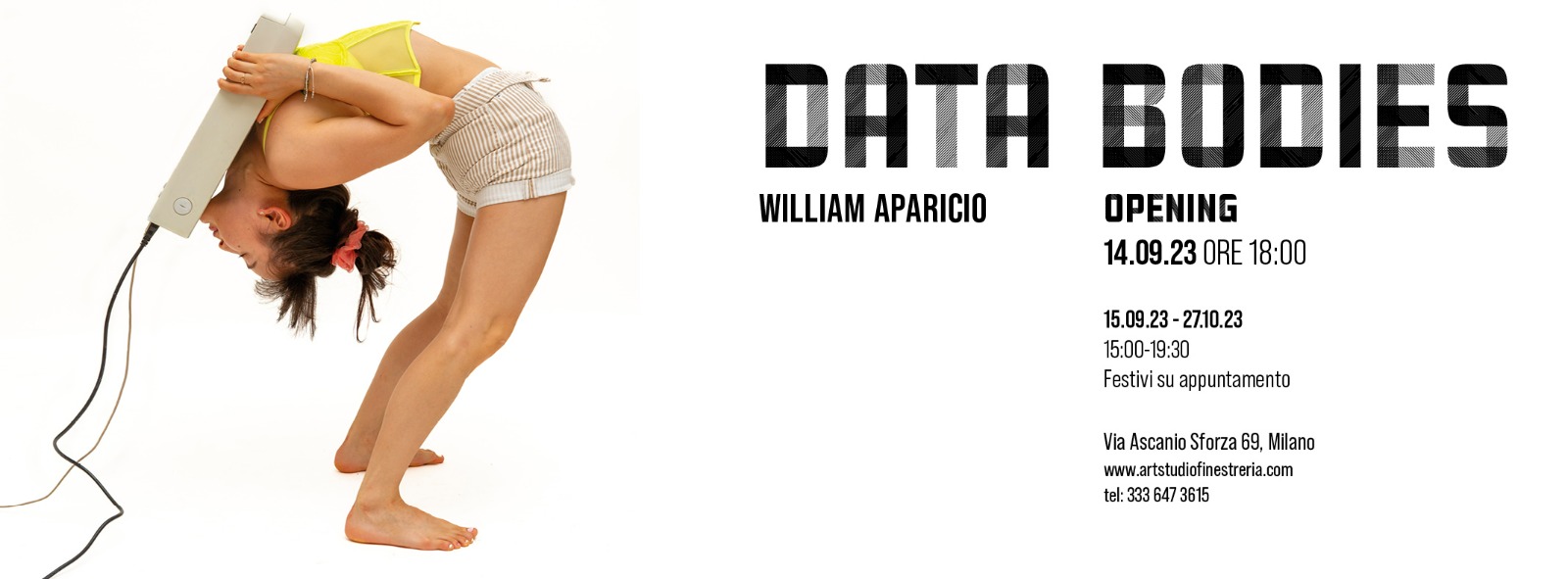 Inaugurazione della mostra -Data Bodies- con l’artista William Aparicio, il 14.09 h18 evento di apertura della nuova stagione. Art Studio Finestreria