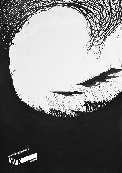 David de la Mano (1975, Spagna) è uno dei più importanti esponenti del movimento dell’Urban Art. Attraverso un linguaggio stilistico minimale, e caratterizzato dall’uso monocromatico del nero, l’artista arriva a creare opere estremamente poetiche, riflesso simbolico della condizione dell’umanità.