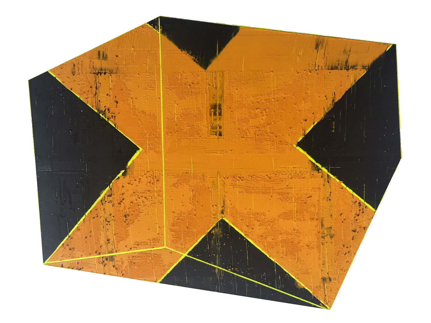 In mostra una serie di recenti lavori ad olio su carta Arches, studi per la realizzazione di tele e tavole di dimensioni maggiori, in cui l’artista continua la sua ricerca sulla percezione attraverso forme, spazi, poligoni irregolari ed ellissi, carichi di grande energia ma bilanciati da un equilibrio e una precisione formale, a loro volta fratturati e frammentati da sottili linee in vividi colori fosforescenti.