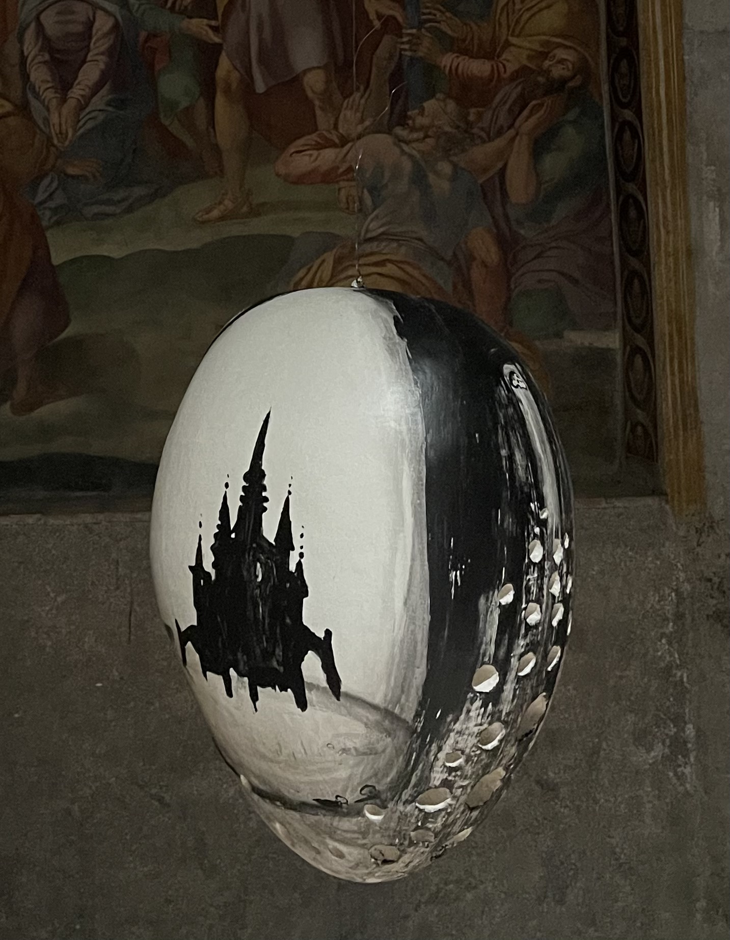 La seconda esposizione prevede una installazione di sculture dipinte site-specific della serie “Costume Interiore” dell’artista italiano Enzo Cucchi, all’interno della meravigliosa Chiesa di Santa Maria ad Nives. Pittura, scultura e disegno, diventano gli strumenti necessari per esternare la propria interiorità, un filo diretto con il proprio inconscio. Le sue immagini appartengono ad un universo poetico spesso allusivo al mondo popolare e alla sua cultura. Considerato un vero e proprio visionario. Enzo Cucchi nasce nel 1949 a Morro d'Alba, un paese nella provincia di Ancona. Da ragazzo vive anche nel capoluogo, con gli zii, e trova lavoro come assistente presso restauratori di libri e di quadri. Cucchi si avvicina alla pittura da autodidatta, vincendo anche premi. Attirato dalla poesia, temporaneamente si distacca dall’arte, coinvolgimento riacquisito alla metà degli anni Settanta durante la sua permanenza a Roma. Enzo Cucchi è spesso presente con Sandro Chia, Francesco Clemente, Nicola De Maria e Mimmo Paladino, i protagonisti di quella nuova corrente italiana che il critico Achille Bonito Oliva denomina Transavanguardia, in mostre organizzate dai principali musei internazionali, dalla Kunsthalle di Basilea (1980) al Guggenheim Museum e allo Stedelijk Museum di Amsterdam (1982), alla Tate Gallery di Londra (1983), al Museum Würth di Künzelsau (Germania, 1998) nonché in occasione delle più importanti rassegne come la XXXIX Biennale di Venezia e la XI Biennale di Parigi (1980), Westkunst a Colonia (1981), la IV Biennale di Sidney, Documenta 7 a Kassel e Zeitgeist a Berlino (1982). Dall'inizio degli anni Ottanta viene riconosciuto anche all'estero come un artista fra i più rappresentativi della nuova temperie culturale che fa del ritorno alla figurazione il tratto distintivo del decennio. Diversi prestigiosi musei gli dedicano mostre personali.