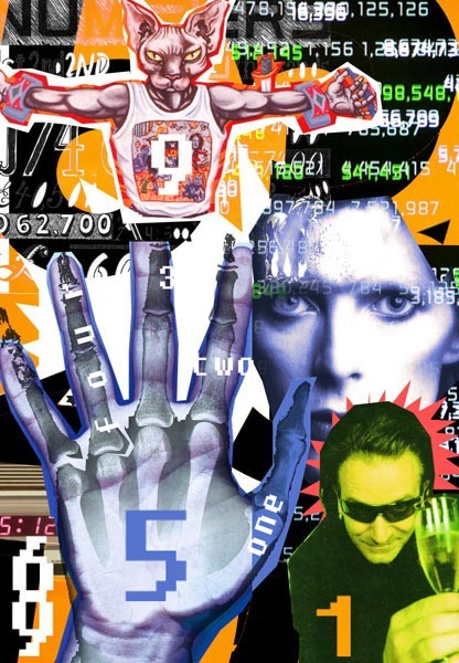 Collage, dipinti, tracce di fumetto, immagini estrapolate soprattutto da internet