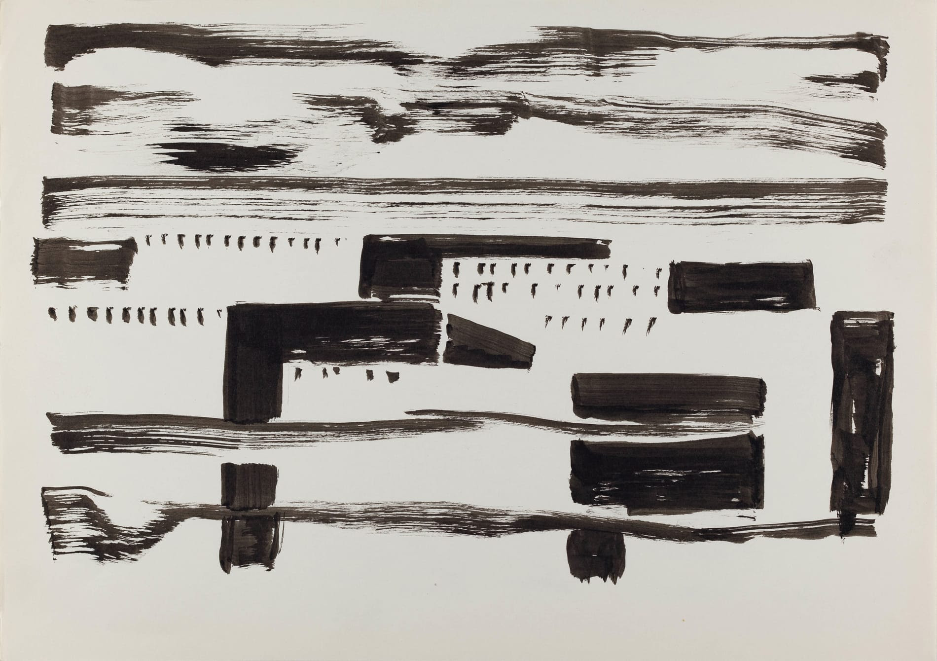 Esposti per la prima volta, i monumentali disegni intitolati Morgengrauen (“Alle prime luci dell’alba”) mostrano campiture di inchiostro nero alternate a vuoti su carta grezza, insiemi di edifici colti in vari stadi di astrazione.