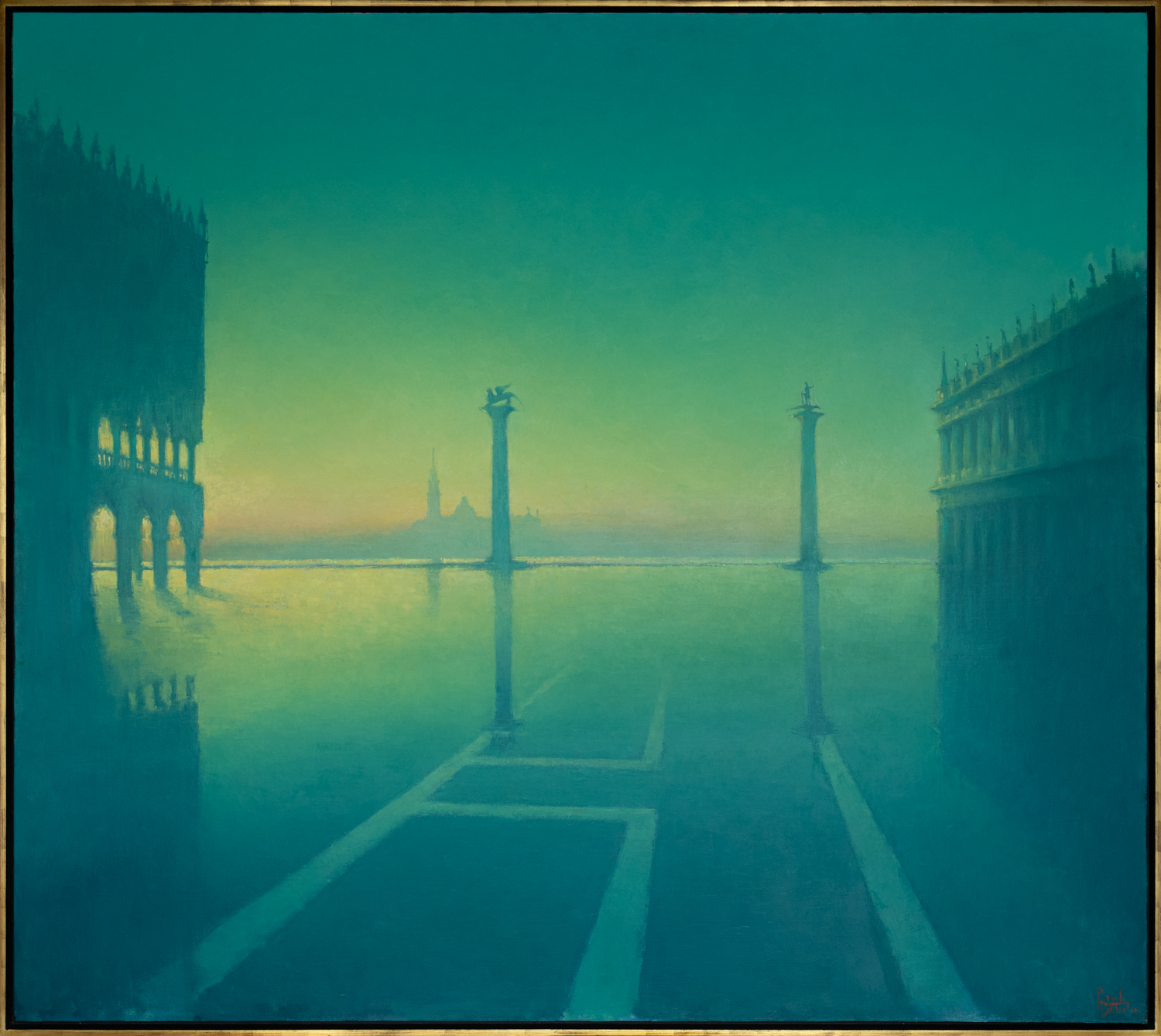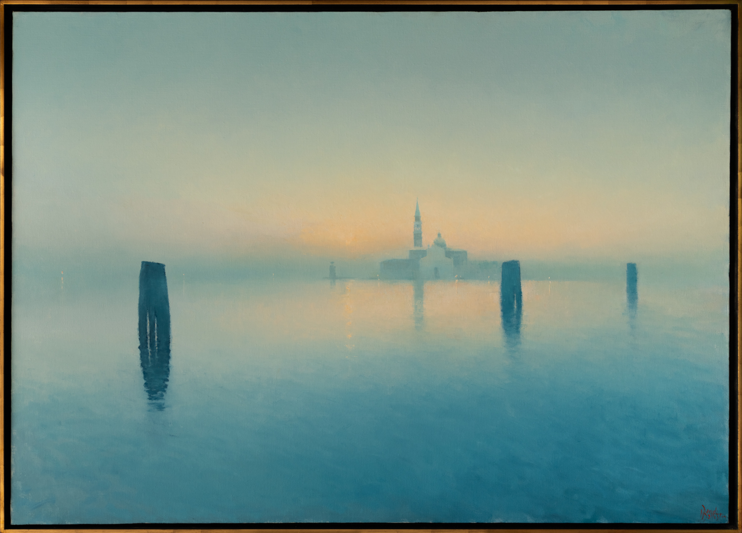 I dipinti di Battistin ritraggono una Venezia immersa in luci surreali, tanto improbabili quanto perfettamente presenti negli inconsci delle persone. L’artista libera la città dagli eccessi che la caratterizzano, focalizzando la nostra attenzione sull’essenza del suo essere fuori dall’ordinario.