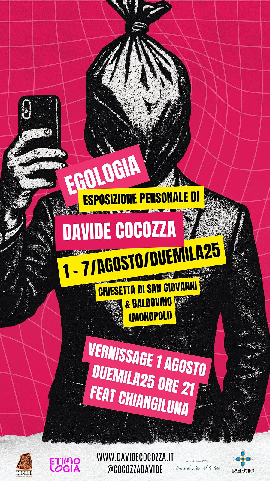 Monopoli. Dal 1° al 7 agosto 2025, nella suggestiva e storica Chiesetta di San Giovanni ed il Baldovino, si terrà la nuova mostra personale dell’artista etico-umanitario Davide Cocozza. EGOLOGIA è il titolo dell’esposizione: un percorso tra opere pittoriche di grandi dimensioni e video arte; fotografie surreali, ispirate al nostro tempo e non lontane da un presente possibile. Quella di Cocozza è un’arte che provoca e sfida, un linguaggio visivo che invita il visitatore a guardarsi allo specchio – o allo schermo, ormai – con presenza e consapevolezza. Se a giugno, nel Palazzo Martinelli di Monopoli, con Like a Zoo l’artista ci aveva mostrato ciò che infliggiamo alla specie animale, in Egologia ci sbatte in faccia – cruda e feroce – la realtà di ciò che stiamo facendo (a causa di un io ipertrofico) a noi stessi e, inevitabilmente, a tutto il resto. Lo specchio, o lo schermo, a cui siamo abituati e a cui affidiamo le nostre imperfezioni (cancellandole magicamente con filtri ed effetti degni di Dalí), questa volta ci restituisce senza filtri la nostra vera immagine: un sacco dell’indifferenziata. “Qualcuno diceva ‘siamo ciò che mangiamo’; io credo che oggi siamo i rifiuti che produciamo,” afferma Cocozza. Oltre i filtri che nascondono la realtà e proiettano desideri sui volti di ciascuno, la verità è un’altra. E dovremmo imparare a guardarla. Buttiamo, gettiamo, abbandoniamo senza scrupoli, come se esistesse un pozzo infinito capace di inghiottire ogni nostro avanzo – fisico o morale. Viviamo ignorando ciò che lasciamo agli altri, con noi e dopo di noi, intenti a spremere al massimo una vita egoistica, indifferente alla natura della Terra e al suo spontaneo sistema di cura: l’ecosistema. Il pozzo multidimensionale che fagocita ogni cosa ancora non esiste. E così la prospettiva che ci resta ha la forma di un sacco nero. Proprio questa forma diventa la protagonista di EGOLOGIA: nuova unità di misura nell’arte di Davide Cocozza, che oggi sostituisce i volti ipercromatici di un tempo in cui le prospettive erano più ricche di speranza e umanità. I dati parlano da soli: intere nazioni sommerse dagli scarti della fast fashion; isole di plastica grandi quanto la Francia che galleggiano negli oceani; in Occidente oltre un terzo del cibo prodotto viene gettato, mentre in altre parti del mondo si muore di fame. Ecco perché l’arte di Cocozza si fa voce, megafono e – come una zanzara – pungola le nostre coscienze intorpidite dalla vita frenetica. Ci costringe a fermarci, a vedere ciò che trascuriamo, abituati a percorrere i binari di piaceri effimeri. Ci riporta a una stazione da ricostruire, mattone dopo mattone, fatta di coscienza, raccolta differenziata, scelte migliori capaci di guardare oltre il proprio ego e riconoscere che siamo parte di un tutto, non padroni di un mondo esclusivamente al nostro servizio. Questa è oggi l’arte di Davide Cocozza: il frutto di una maturità raggiunta non solo attraverso l’accademia, ma grazie alle esperienze vissute sul campo, agli incontri, ai libri letti e alle scelte compiute. Un’arte nutrita dall’amore incondizionato verso ogni forma di vita, dalla scelta di essere vegano, buddista e cristiano insieme. “La vita è fatta di scelte,” confida l’artista. “In ogni momento posso decidere: ascoltare o non farlo, aiutare o non farlo, essere gentile o non esserlo. Ogni scelta, anche la più piccola, cambia il panorama e la strada che realizzo davanti a me.”