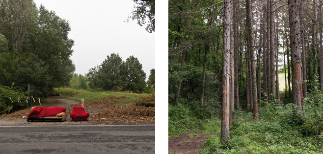 Cosa c’è di più sacro della volontà dell’uomo di cercare tra gli anfratti e le infinite pieghe della realtà attimi di spiritualità? Davide Conventi non può fare a meno di notare e di fotografare, prima con forte disappunto, ma poi stregato e affascinato, divani abbandonati ai margini dei campi, sui bordi delle strade, nei paesaggi piani e spesso velati di nebbia delle province di Modena, Reggio Emilia e Bologna. è affascinato dall’aura di questi relitti, custodi un tempo di calde intimità, di meritati riposi dalle fatiche quotidiane ed ora rifiuti inutili, strana metafora del nostro ineluttabile divenire. “Il primo divano è del 2010, l’ultimo del 2015”, scrive Davide Conventi, “e la prima idea fu di provare a sedersi e fotografare ciò che vedevo, ma sarebbe stata una visione limitata, ristretta al reale, quindi ho pensato di viaggiare”. Esorcizza così con il viaggio, il fantasma velato ma sempre presente del nostro destino, accostando ad ogni fotografia di divano abbandonato la fotografia di un tratto di strada, lungo un cammino, durante un percorso, che diventa metafora del nostro vivere quotidiano. La mostra fotografica è accompagnata dal racconto di Giulio Ferrari “Di vani abbandoni e altre felicità minori“. Il testo, che si stende con ritmo lento e cadenzato, adotta un gergo popolare incisivo e ruota attorno a situazioni ispirate dall’oggetto abbandonato che mostra senza pudore interiora e ossa rotte, come totem dimenticato.