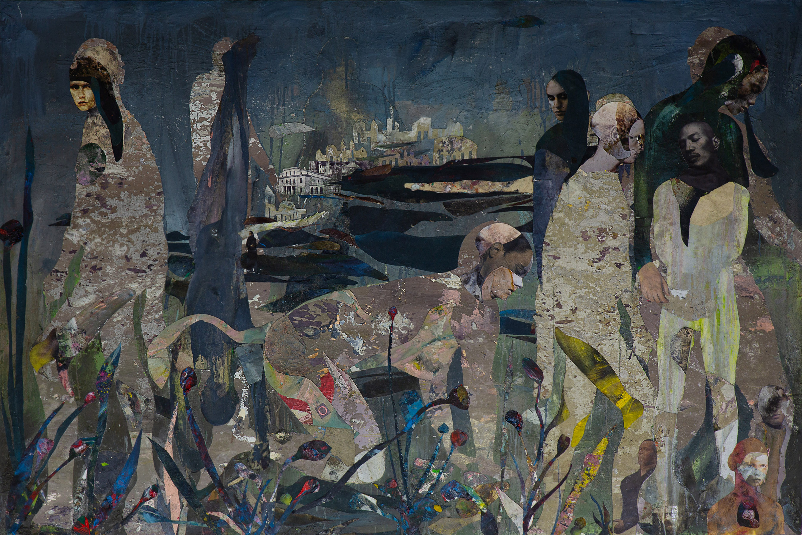 L’artista, come farebbe un poeta che osservi la realtà frammentata in segmenti di senso e sentimento, la ricompone creando enigmi, ponendo domande, invogliando l’osservatore alla critica e al dialogo. Da sempre la pittura di Fioretta Falky è espressione di una ricerca interiore, tra simboli e allegorie, e una estetica che attinge all’arte contemporanea: in tal senso, la mostra si presenta come una biblioteca umana che custodisce la memoria collettiva, una moltitudine che racconta il singolo, come le sue opere affollate di personaggi, inquieti cercatori di qualcosa, forse di se stessi o di un più alto senso della vita.
