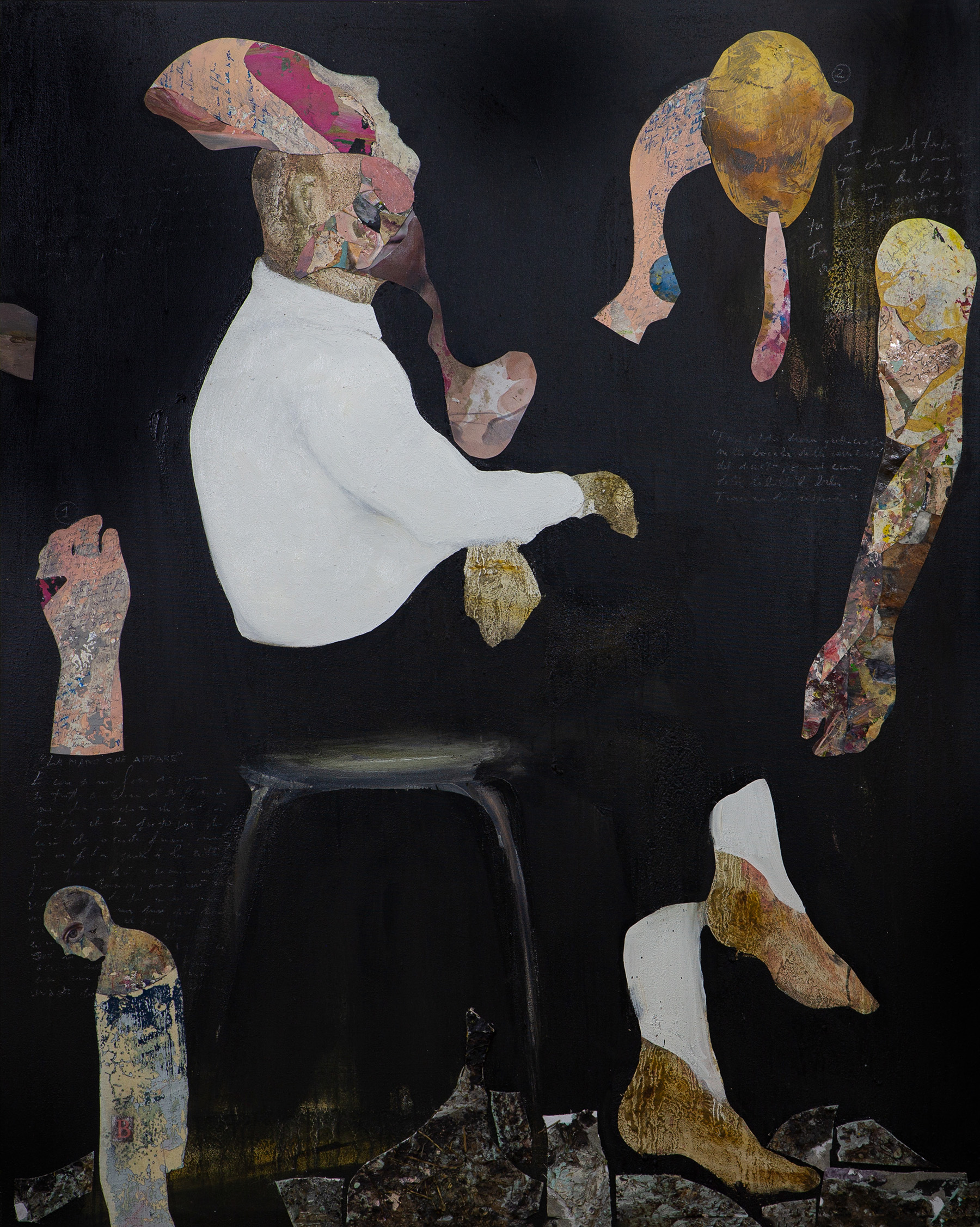 La mostra vede l’esposizione delle pitture e delle installazioni facenti parte la più recente produzione dell’artista: si segnala in particolare l’installazione Corpus ideata per l’hangar di fabbricapoggi che si sviluppa in lunghezza per oltre 8 metri composta da 200 opere.