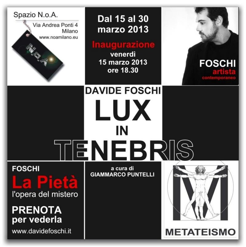 Dal 15 al 30 marzo 2013, l’artista contemporaneo Davide Foschi sarà a Milano, presso lo Spazio N.O.A., con una mostra personale di opere pittoriche, intitolata “LUX IN TENEBRIS”, curata da Giammarco Puntelli.