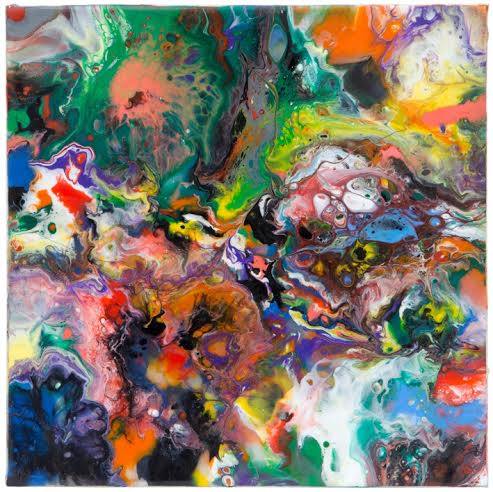 di colori apparentemente scomposti, forme circolari, strisce lineari, trame e stratificazioni