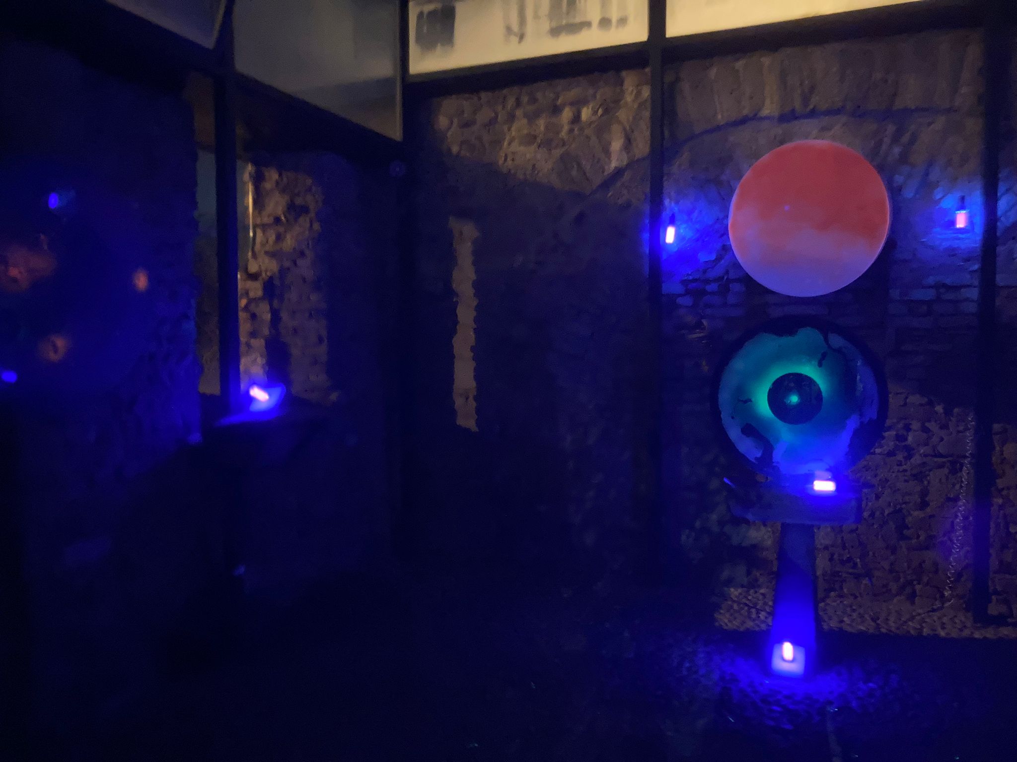 Fluorescenza, evanescenza, trascendenza e metamorfosi della luce, pronta a trascolorare in un altrove cromatico, un mondo parallelo di pura luminescenza tardiva. Lo spettro visivo è un fantasma notturno, una apparizione disposta a reincarnarsi in un’essenza luminosa…