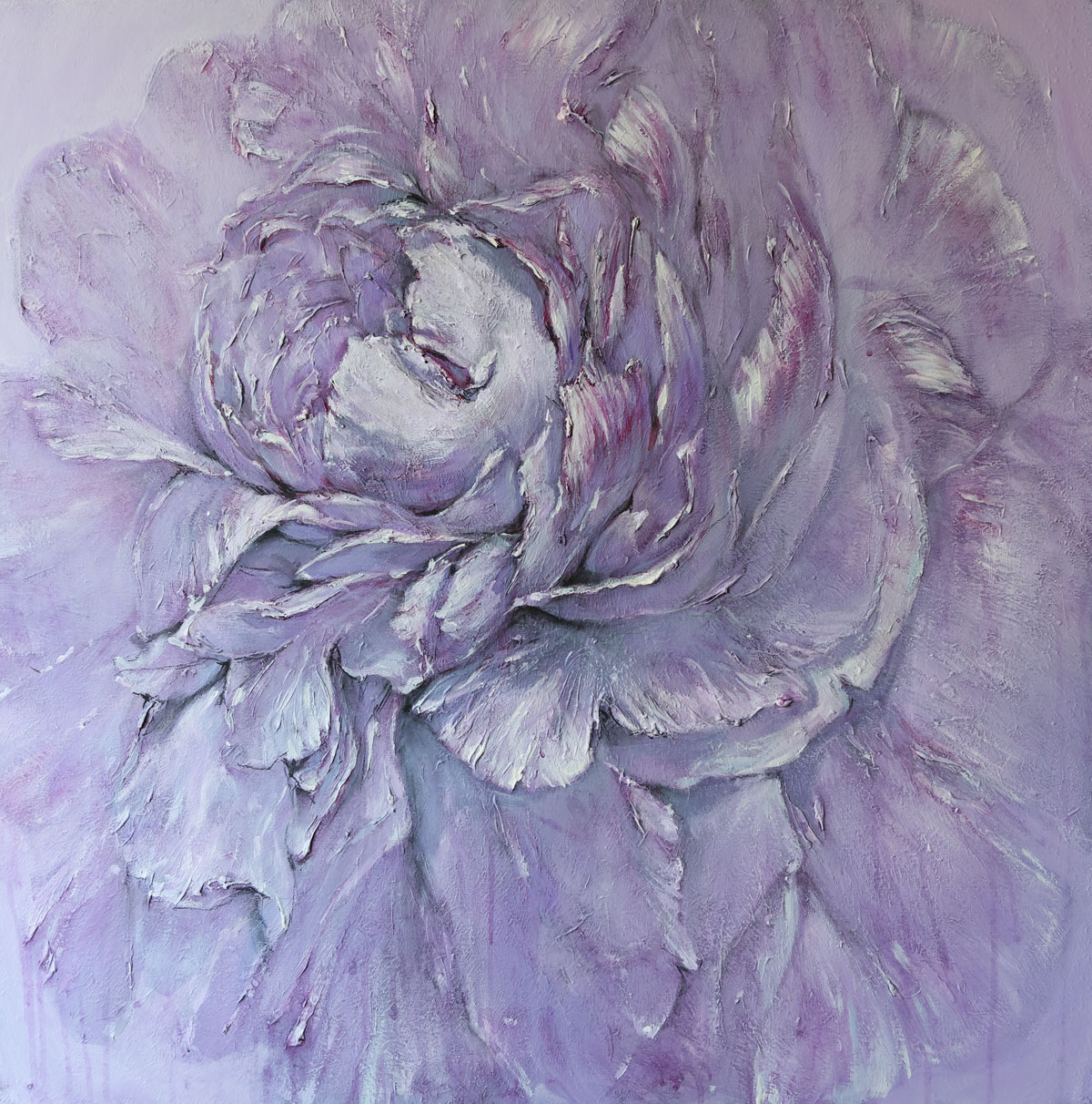 Si liberano dalla materia indistinta della tela. Affiorano. Sono rose, iris, ma soprattutto meravigliose peonie.