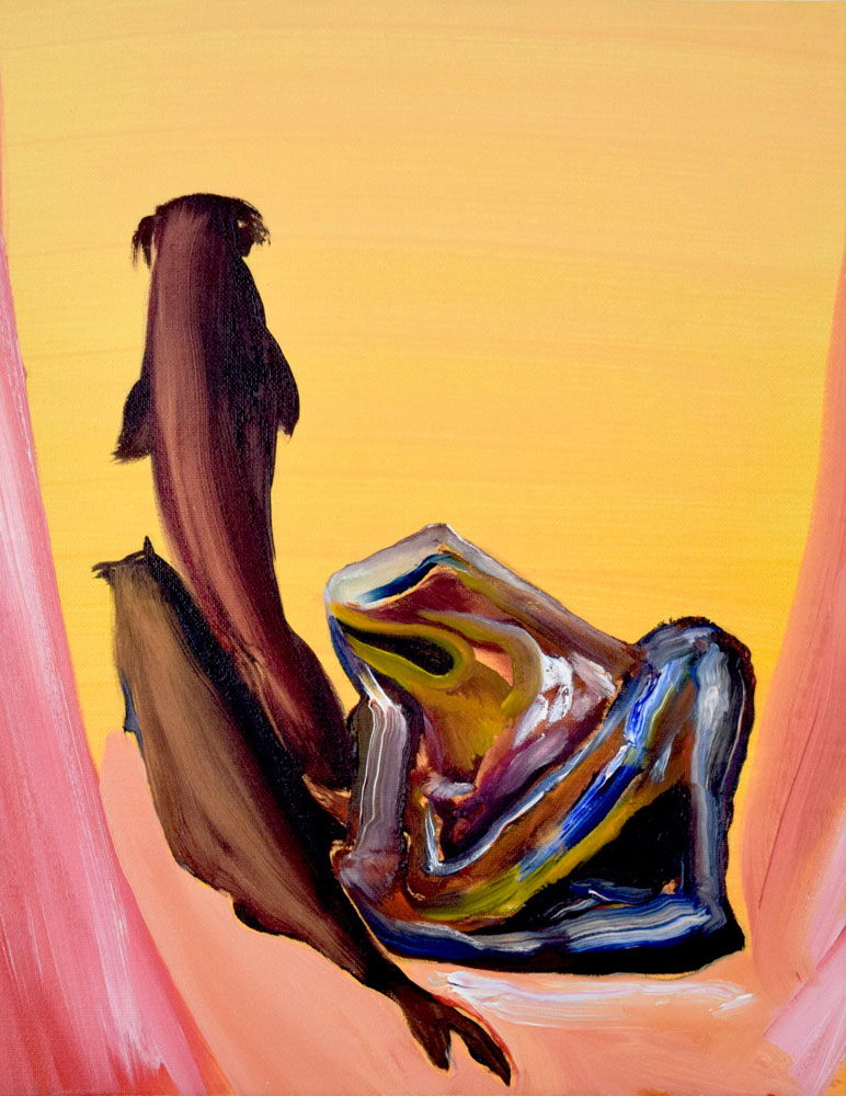 L'occhio ha detto: «Segui il confine delle forme e cerca i corpi in ciò che vedi». La testa ha detto: «Una volta c'è un animale, una volta c'è un uomo, una volta c'è una donna, una volta non c'è niente». La voce dell'artista ha detto: «C'è l'uno e c'è l'altro: la fusione del corpo animale e umano è un ibrido tatuato sulla pelle di entrambi». Davide Serpetti ha ascoltato l'occhio, la testa e la voce dell'artista e ha creato il suo bestiario, fatto di creature oniriche che si generano nell'incontro di colori pacati e profondi.