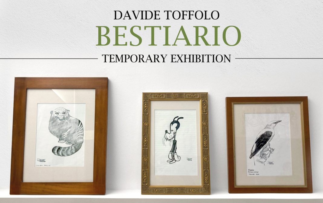 Per questa Temporary Exhibition che si svolge il 26-27-28 maggio l'occasione è di poter acquistare i disegni originali del libro "Bestiario" di Davide Toffolo. Sono disegni eseguiti con tecniche diverse, anche insolite da parte di questo autore conosciuto soprattutto per le sue graphic novel "Pasolini", "Carnera", "Il re bianco"... e per la sua attività di musicista con il suo gruppo i Tre Allegri Ragazzi Morti. Infatti emerge la qualità di disegnatore con un occhio attento e scientifico nel cogliere i particolari di insetti, uccelli, orsi, cani, gatti e animali fantastici. La collezione di disegni, bozzetti e schizzi preparatori esposta nello studio lo trasforma in un "museo" di storia naturale ricreato dalla visione di un artista.