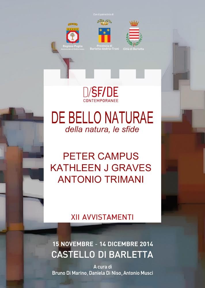 In mostra nuove opere video dell’artista americano Peter Campus, considerato uno dei pionieri della videoarte, mostrate in anteprima a Barletta, affianco ad opere fotografiche dell’artista americana Kathleen J. Graves e ai paesaggi elettronici di Antonio Trimani