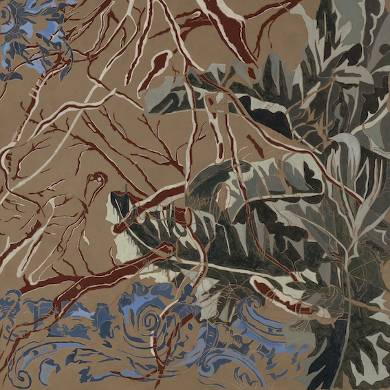 Among the new works Debora Hirsch is presenting in Trento there is a series of square canvases, a format on which the artist has worked with single-minded and meaningful obstinacy. The square, which in Western culture evokes the clarity of rationality, is here intended to enclose fluid images, at times almost amniotic, permeated with substrates that escape and lead towards mutant depths. In the perimeter of the square, clarity is by no means disavowed, but brought to a higher condition in which it assumes mobile forms, reluctant to embrace any interpretative rigidity. And yet within those forms, history is condensed, along with all its wounds, as in the beautiful ‘Firmamento (pelourinho)’, which recalls a whipping post used by the conquerors; geography, with rivers that become the venous system of painting ‘Firmamento (river veins)’; and nature with its everyday and at the same time totemic structures at ‘Firmamento (calabash 2)’.