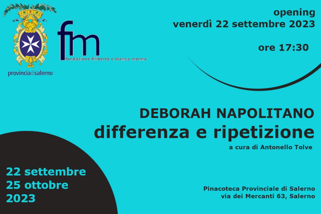 Venerdì 22 settembre, alle ore 17,30, presso la Pinacoteca Provinciale di Salerno (via Mercanti 63) viene inaugurata Differenza e Ripetizione, l’antologica di Deborah Napolitano che proseguirà fino al 25 ottobre 2023. Curata da Antonello Tolve, la mostra è organizzata dalla Fondazione Filiberto e Bianca Menna e dal Lavatoio Contumaciale, in collaborazione con il Museo della Ceramica Alfonso Tafuri e con il patrocinio della Provincia di Salerno.