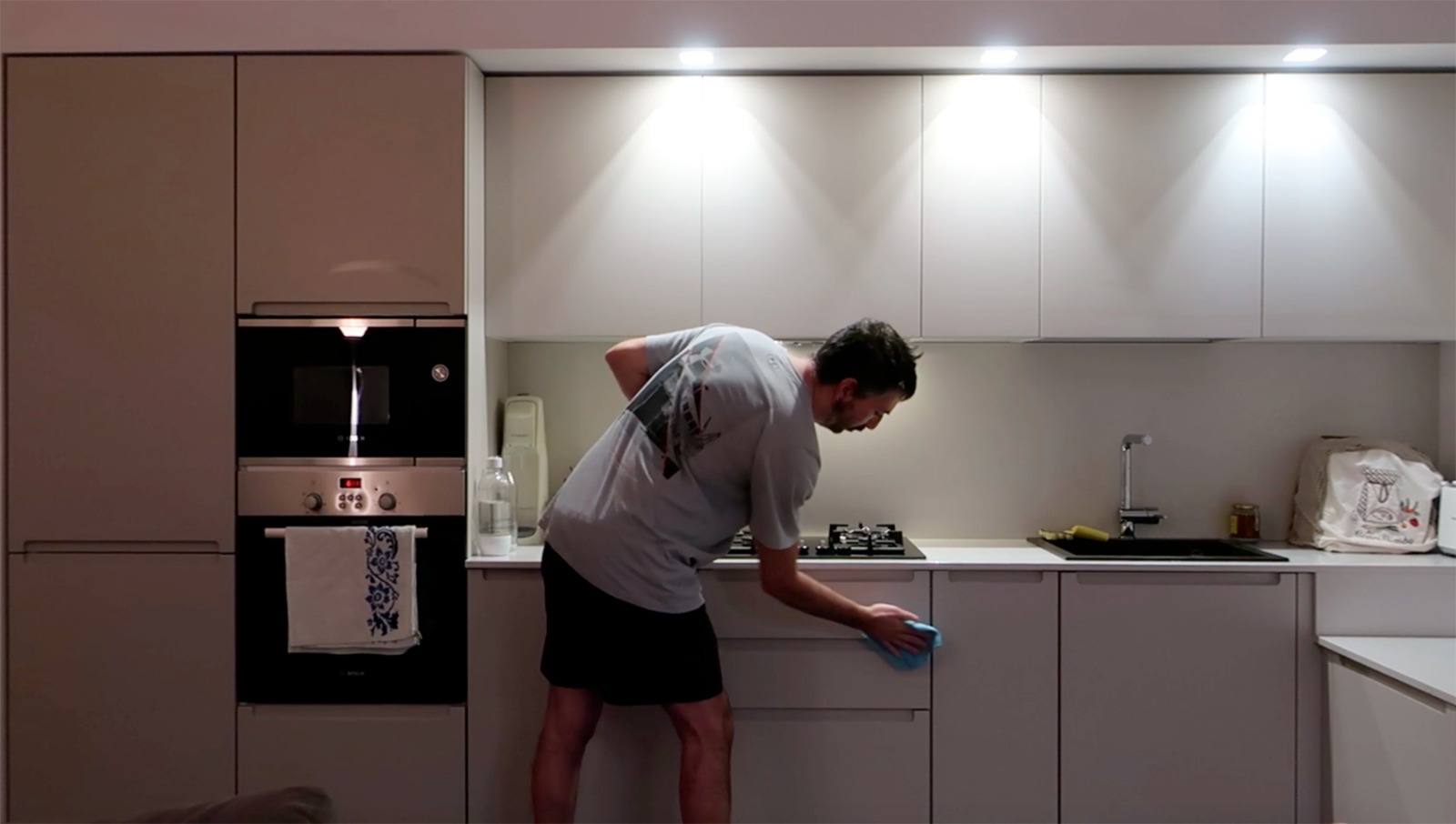 Partendo dallo scenario immersivo proposto da Sala, dove una piccola porzione di cielo è circoscritta da un basamento in ferro bianco, che dona una sensazione di leggerezza e isolamento al tempo stesso, si passa ad una realtà domestica distorta con il video di Suffritti, focalizzato sulle ossessioni. Un’ immagine solo apparentemente ironica, dove il soggetto si allontana dalla sua interiorità, creando uno stile di vita alienante. Il silenzio è l'inizio della fine, e nella composizione musicale di Pol Palli si snodano contorsioni ritmiche che percuotono l’animo facendo perdere l’equilibrio.