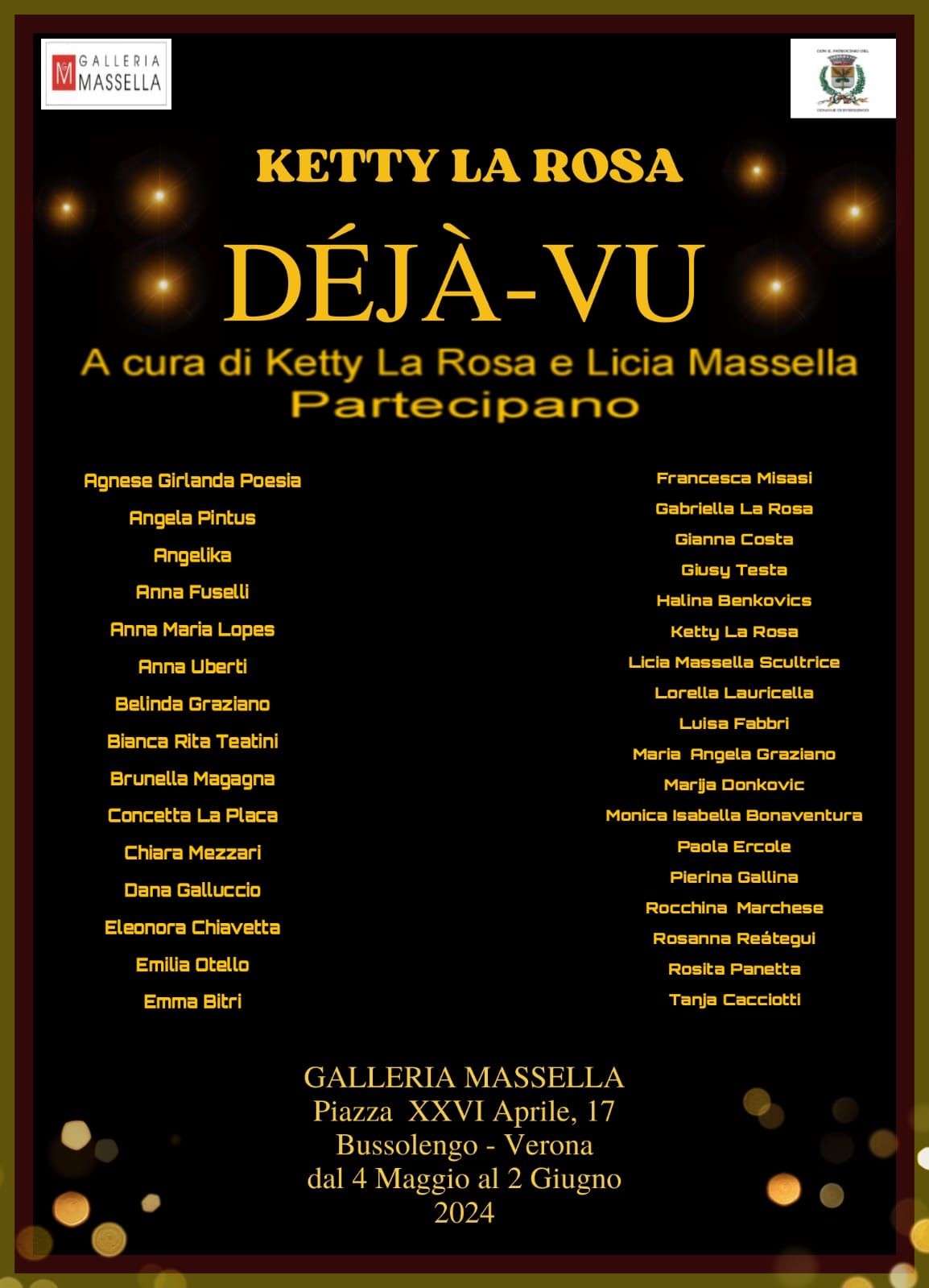 il rispetto, la creatività, la dignità di ogni identità. L'artista parla, scrive, si impegna, modella, disegna e dipinge "icone del bene", sostiene e motiva le giovani generazioni. Unica soluzione all'indifferenza: l'empatia verso tutto e tutti, il recupero della nostra identità più profonda e la responsabilità. Hanno aderito al progetto con entusiasmo e convinzione tante donne artiste poetesse e pittrici. L’evento Déjà-vu avrà luogo il 4 Maggio 2024 presso Galleria Massella in Piazza XXVI Aprile, 17 a Bussolengo VR ed è patrocinato dal Comune di Bussolengo VR, grazie