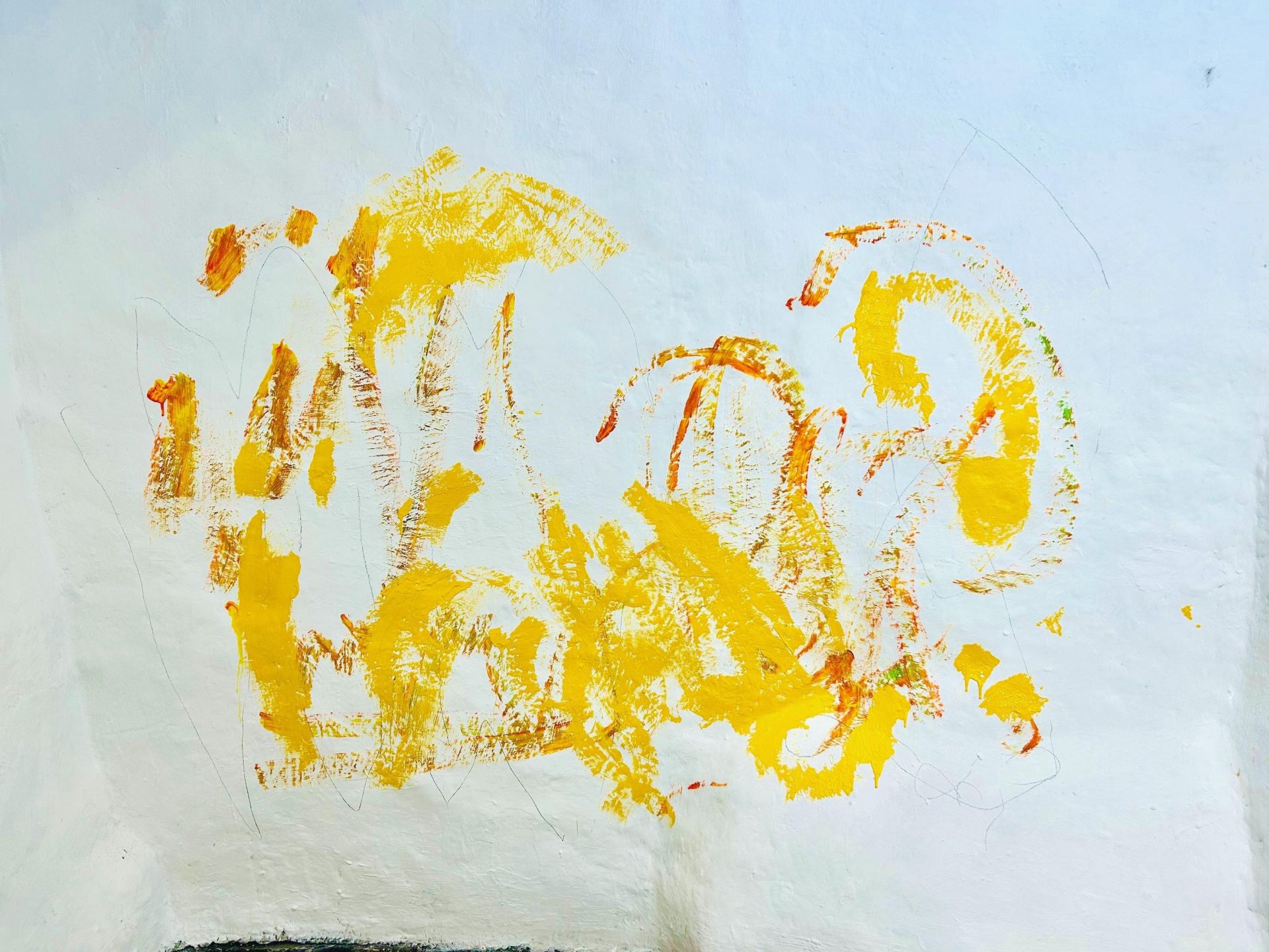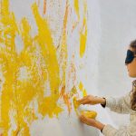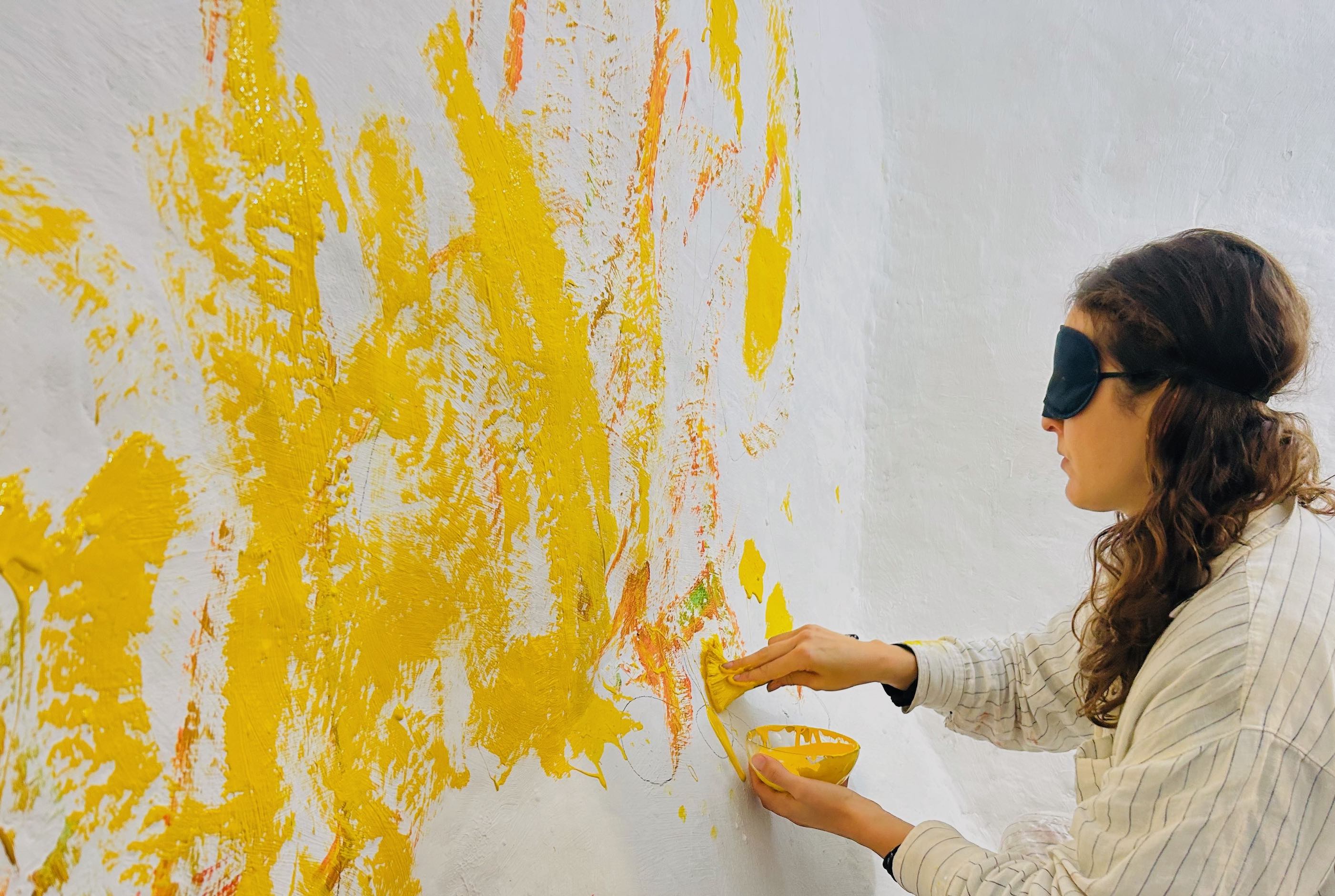 un dialogo visivo e non visivo: pareti intervenute attraverso gesti pittorici realizzati senza vedere, come un portale verso la nostra versione interna che non ha una voce ed è libera dai condizionamenti.