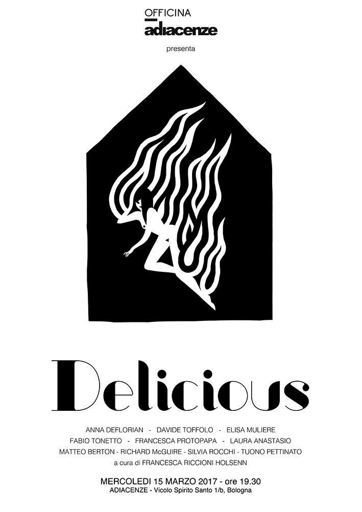 Mercoledì 15 marzo alle ore 19.30 Adiacenze inaugura DELICIOUS, show collettivo curato da Francesca Riccioni Holsenn, che raccoglie le opere di 10 artisti: Laura Anastasio, Matteo Berton, Anna Deflorian, Richard McGuire, Elisa Muliere, Francesca Protopapa (alias Pistrice), Silvia Rocchi, Tuono Pettinato, Davide Toffolo, Fabio Tonetto.