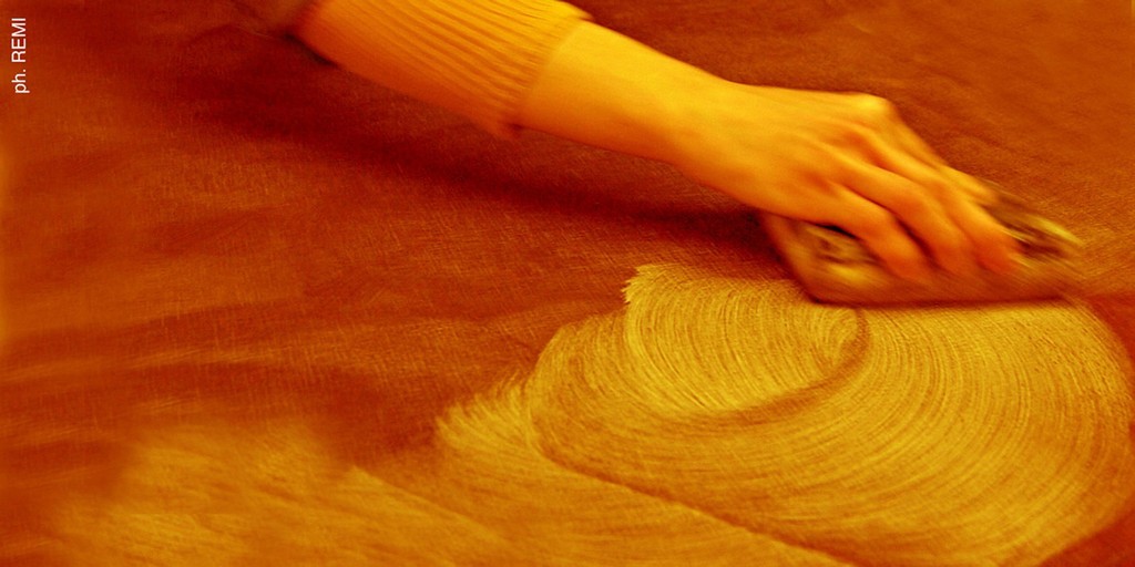 Nelle foto dei due autori si scorgono alcuni dettagli del microuniverso della concia al vegetale: dalla pulitura della pelle con la stira, alla palmellatura (antica tecnica adottata per ammorbidire la pelle), dalla tamponatura alla lucidatura, al taglio.