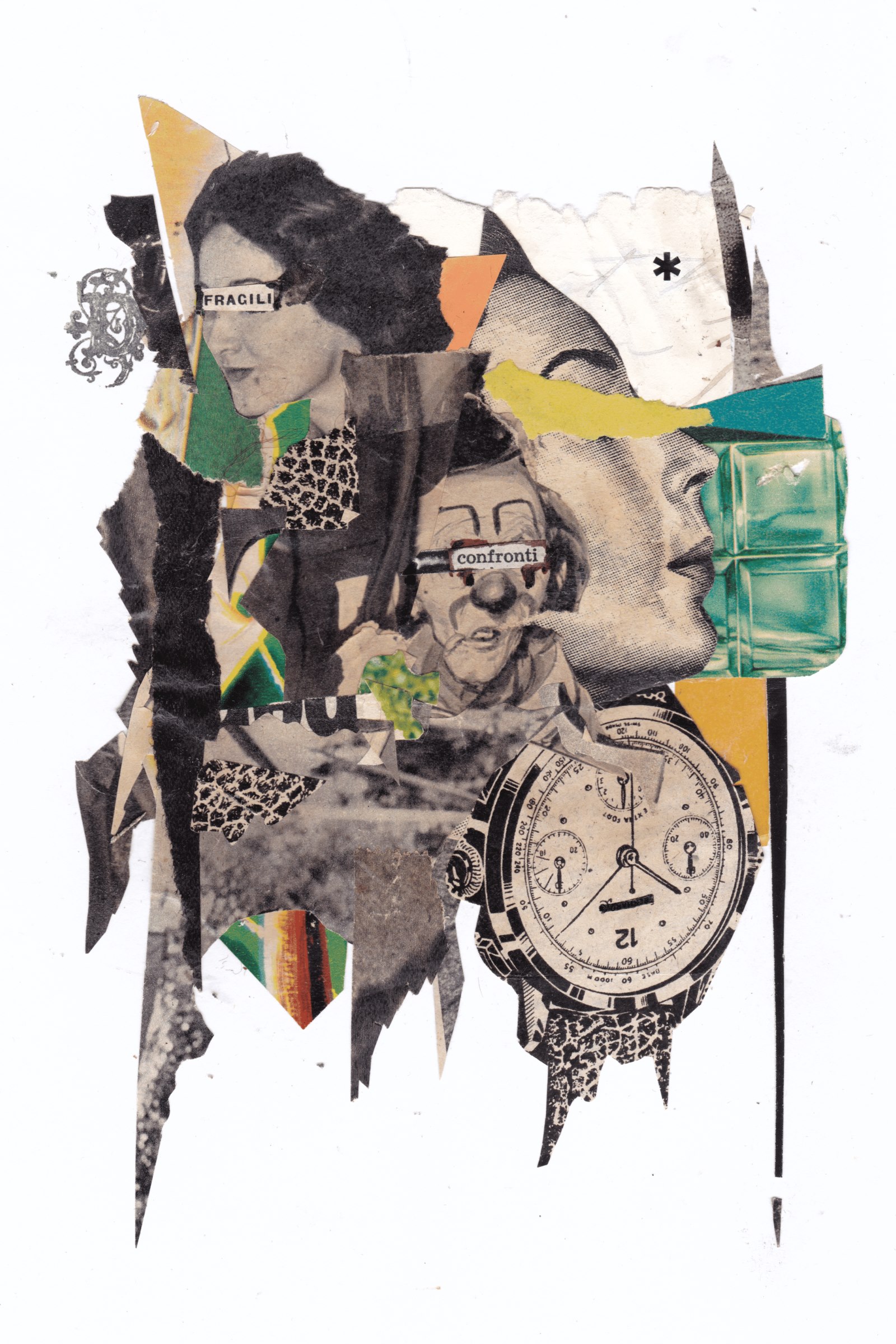 Demetrio Di Grado (n. 1976, Palermo) è un artista italiano che vive e lavora a Caltagirone, in Sicilia. La sua pratica attraversa l’arte urbana e il collage analogico, attingendo ampiamente a materiali stampati d’epoca. Attraverso frammentazione e ricomposizione, il suo lavoro indaga la presenza umana, la memoria culturale e la traccia visibile del lavoro manuale. I collage di Di Grado mettono al centro il processo, l’imperfezione e la tensione materica, coniugando sensibilità legate allo spazio urbano con una composizione di matrice più intimamente laboratoriale.