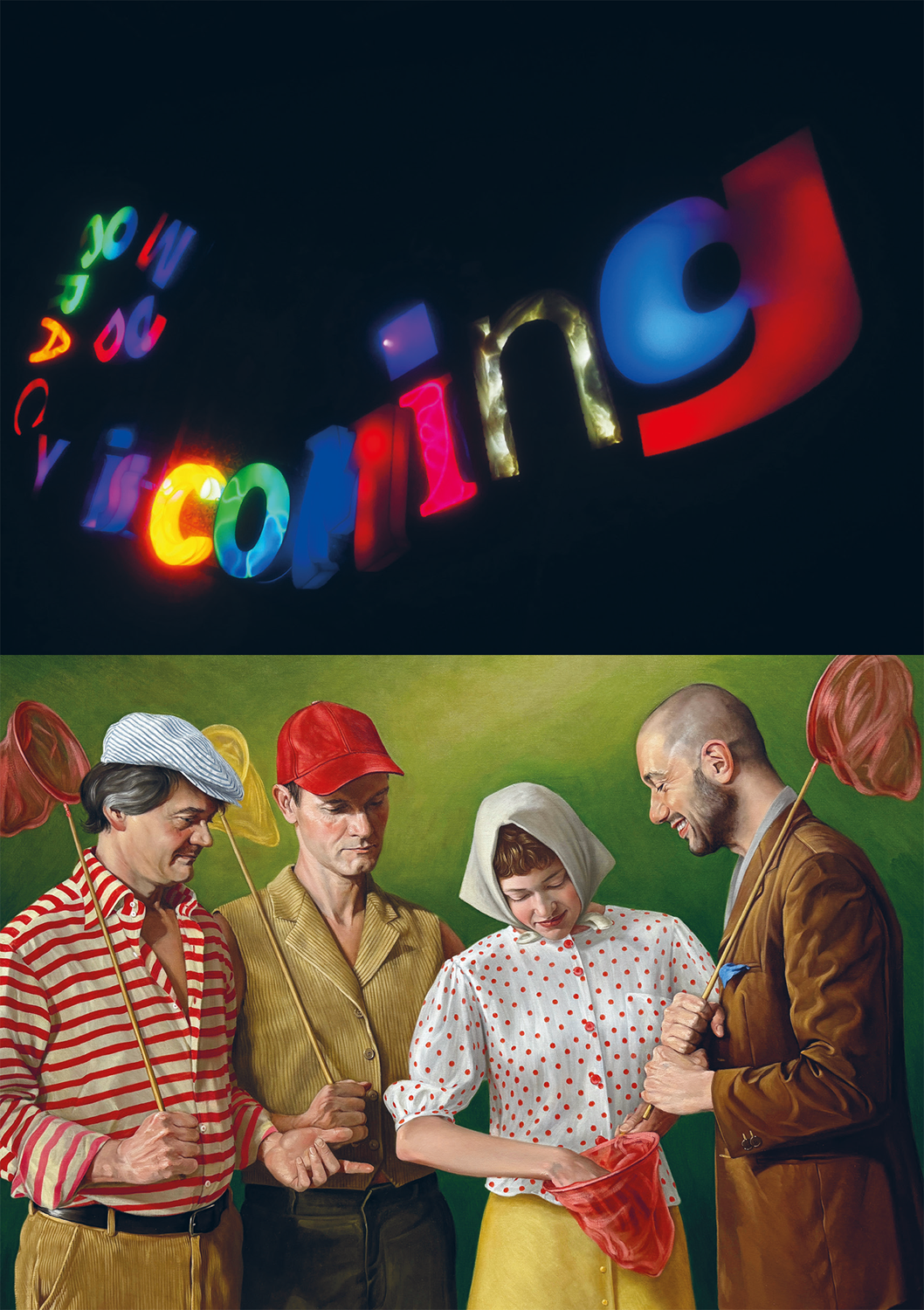 La democrazia è promessa, processo, tensione. È una parola continuamente invocata, ma mai definitivamente compiuta. Il titolo della mostra – Democracy is coming – riprende la celebre canzone di Leonard Cohen del 1992 e la trasforma in una dichiarazione sospesa tra speranza, ironia e interrogazione. Se la democrazia “sta arrivando”, allora non è ancora qui: da dove proviene? E soprattutto, cosa la rende reale? In questo scarto tra presente e attesa si può intravedere ciò che Jacques Derrida, in Rogues: Two Essays on Reason (2003), ha definito “democrazia a venire”: non una forma politica compiuta, ma una promessa strutturalmente incompiuta, sempre differita, che esiste proprio nella sua apertura all’altro e nel suo continuo rinvio. La democrazia, in questa prospettiva, non coincide mai pienamente con le sue istituzioni, ma abita lo spazio fragile tra ciò che è e ciò che deve ancora essere. L’installazione di Leander Schwazer (1982, Italia) prende forma da un gesto di recupero e trasformazione. Lettere pubblicitarie scartate, provenienti da diverse città europee e originariamente destinate a diffondere messaggi commerciali nello spazio pubblico, vengono ricablate e riattivate per comporre la frase Democracy is coming. Le lettere luminose non sono disposte in linea retta, ma seguono la traiettoria di una spirale logaritmica sospesa al soffitto, come un firmamento artificiale. Questa costellazione luminosa suggerisce una cosmologia possibile per la democrazia: un sistema di orientamento, simile a quello che per secoli ha guidato i navigatori attraverso le stelle. In questo senso, l’opera non è solo un messaggio, ma una domanda aperta sul nostro modo di orientarci nel presente. La democrazia appare allora non come un punto di arrivo, ma come un campo di forze, una direzione da cercare collettivamente — o, seguendo Derrida, qualcosa che esiste proprio nella sua impossibilità di essere definitivamente raggiunta, come una stella che orienta senza mai essere toccata. All’ingresso dello spazio, l’installazione Tutto è in equilibrio introduce una dimensione partecipativa. Centinaia di livelle sospese su fili formano una superficie vibrante che reagisce al movimento degli spettatori. Il loro equilibrio può essere alterato o ristabilito dal passaggio del pubblico, trasformando l’opera in un organismo sensibile. Collocate davanti alla vetrina della galleria, le livelle ricordano una vetrata contemporanea: la luce colorata filtra nello spazio e rende visibile l’instabilità dell’equilibrio. Come la democrazia stessa, l’opera esiste solo attraverso la partecipazione e la responsabilità condivisa. L’equilibrio non è dato una volta per tutte: deve essere continuamente negoziato, esposto al rischio e all’alterazione — sempre, ancora una volta, a venire. “It's coming from the women and the men” cantava Leonard Cohen, e così sulle pareti i dipinti di Nazar Strelyaev-Nazarko (1998, Ucraina) introducono la dimensione umana e narrativa della mostra. Se l’installazione di Schwazer suggerisce una struttura cosmica o sistemica, le figure di Nazar funzionano come una possibile polis, ricordandoci che senza persone non esiste democrazia. Nato e cresciuto a Kharkiv, città segnata da una storia culturale stratificata, Strelyaev-Nazarko intreccia memoria personale, storia politica e tradizione pittorica. Il suo linguaggio visivo nasce dall’incontro tra la formazione accademica post-sovietica, la passione per gli antichi maestri europei e un’ironia sottile che attraversa i suoi soggetti. Nel dipinto Babylonian, l’artista rielabora un’immagine trovata in un libro di propaganda sovietica appartenuto alla nonna: una lavoratrice raffigurata con una catena al collo. Trasformando quella figura in un ritratto più sensuale e ambiguo, con una camicia semitrasparente e una catena dorata sulle spalle, Nazar costruisce un’immagine sospesa tra seduzione, potere e costrizione. Il titolo rimanda alla Torre di Babele, simbolo di un’ambizione collettiva destinata al collasso. In questa lettura, il progetto utopico dell’Unione Sovietica appare come una nuova Babele: una costruzione monumentale fondata sull’idea di progresso universale, ma destinata a frammentarsi nelle sue contraddizioni. Attraverso i suoi personaggi, Strelyaev-Nazarko esplora il modo in cui la memoria individuale filtra e rielabora la storia. I suoi dipinti oscillano tra nostalgia, critica e humour, mostrando come il passato sopravviva in frammenti, immagini e miti che continuano a modellare il presente. In Democracy is coming, le opere dei due artisti costruiscono un dialogo tra scala cosmica e dimensione personale, tra struttura e corpo, tra promessa politica ed esperienza individuale. La spirale luminosa di Schwazer suggerisce una traiettoria collettiva, mentre le figure di Nazar ricordano che ogni sistema politico è composto da individui, con le loro memorie, desideri e contraddizioni. La mostra non offre una definizione di democrazia. Piuttosto, propone uno spazio in cui orientarsi: tra stelle artificiali, equilibri instabili e figure che emergono dalla storia. Forse la democrazia non è un punto d’arrivo, ma una direzione — qualcosa che, come suggerisce Cohen e come Derrida radicalizza, non smette mai di arrivare, perché esiste proprio nel suo continuo differirsi.