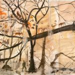 O da segni, ingiallimenti e sporcature del tempo che non solo l’artista guarda attentamente, ma che trova, sceglie e protegge e a cui si affida per seguire un nuovo sentiero nel bosco. O una storia.