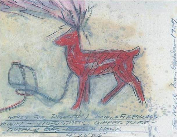 Per Oppenheim la natura diventa un luogo da occupare e da esperire con strumenti offerti dalla tecnologia (aerei, macchine, scavatrici). I suoi segni sono primari ed elementari come i solchi tracciati sulla neve o sulla terra: si appropriano di una natura che appare come un dato fenomenico in sé e che fa metaforicamente da supporto dell’operare artistico, essa si rivela in “Study for Digestion” sotto le sembianze di un cervo che converte in sostanza vitale l’energia artificiale del gas.