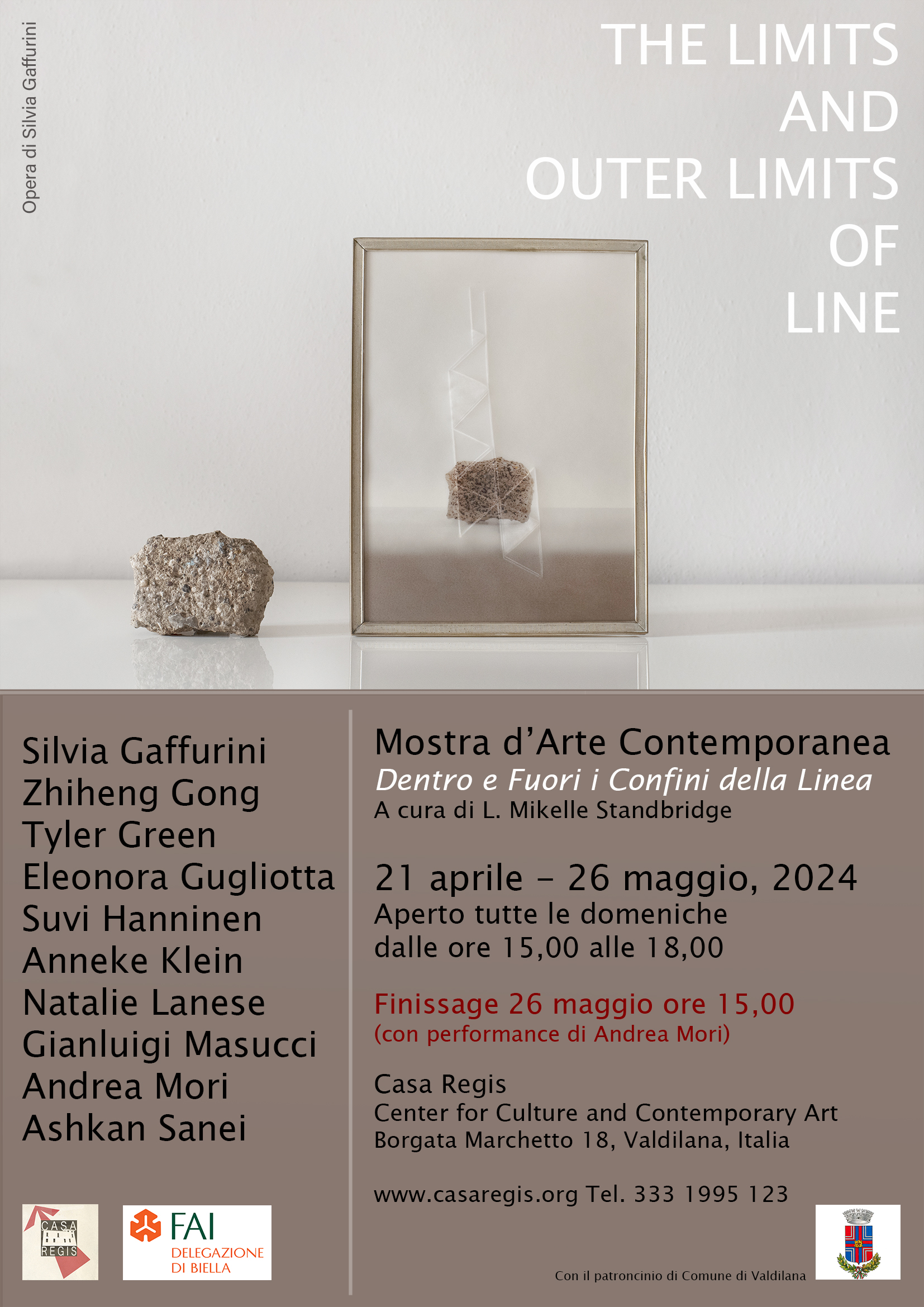 Casa Regis - Centro per la Cultura e l'Arte Contemporanea ospita con orgoglio la mostra collettiva "The Limits and Outer Limits of Line" (Dentro e Fuori i Confini della Linea), a cura di L. Mikelle Standbridge, in mostra dal 21 aprile al 26 maggio 2024. Le opere abbracciano molteplici mezzi, dall’arte tessile, alle opere su carta, alle installazioni, alle performance. Utilizzano gli otto ambienti espositivi artisti italiani e internazionali, con rappresentanza da Olanda, Iran, Finlandia, Cina, Stati Uniti e, naturalmente, Italia. Ogni artista, riflettendo attraverso un mezzo espressivo di sua scelta, è stato invitato ad affrontare il tema, rapportandosi alla linea con un approccio diretto e gestuale di natura bidimensionale oppure attraversando i significati su più livelli legati ad essa, oppure ancora superando i limiti fisici della linea così come quelli dello spazio per indagare i confini mentali, psicologici, metafisici degli individui.