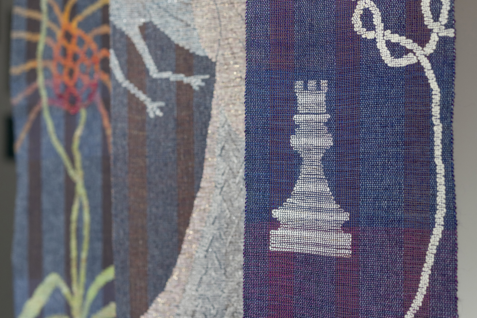 La mostra, a cura di Alessandra Tempesti, si focalizza su una serie di preziosi broccati, tessuti a mano da Graziella Guidotti nell’arco di 10 anni, che raccontano la storia della Castellana di Vergy, soggetto di un poema cavalleresco francese del XIII secolo, poi tradotto in rime fiorentine ne La Dama del verziere. Si tratta dell’unica serie figurativa all’interno della vastissima produzione tessile di Graziella Guidotti, prevalentemente astratta, in cui i motivi decorativi nascono direttamente dagli intrecci, spesso derivati dalla reinterpretazione delle strutture tessili delle sete rinascimentali e dei tessuti popolari definiti ‘paesani’ a cui la tessitrice ha dedicato innumerevoli studi e ricerche, considerandoli una fonte inesauribile di ispirazione. In mostra anche una serie di piccoli studi, realizzati con una tessitura originale inventata e messa punto da Graziella Guidotti a partire dai tessuti paesani, anche per la produzione industriale su telai elettronici. L’intreccio è stato protetto da copyright, a testimonianza della sua straordinaria capacità inventiva che per tutta la vita l’ha portata a studiare e ibridare l’antico e la tradizione con la modernità, la tessitura manuale con la progettazione per l’industria.