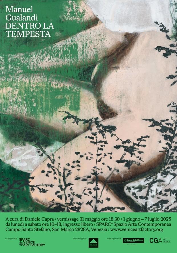 tela e su carta che nascono dal confronto dell’artista con la Tempesta di Giorgione: il celebre dipinto è stato per Gualandi fonte iconografica e ispiratrice di una serie di opere che impiegano grammatiche espressive differenti, che spaziano dall’informale all’astrato, fino al monocromo. La mostra è accompagnata da una pubblicazione, edita da art-frame books e disponibile a fine giugno, con i testi del curatore, di Luca Berta e Francesca Giubilei, Monica Ferrando e Massimo Matioli.