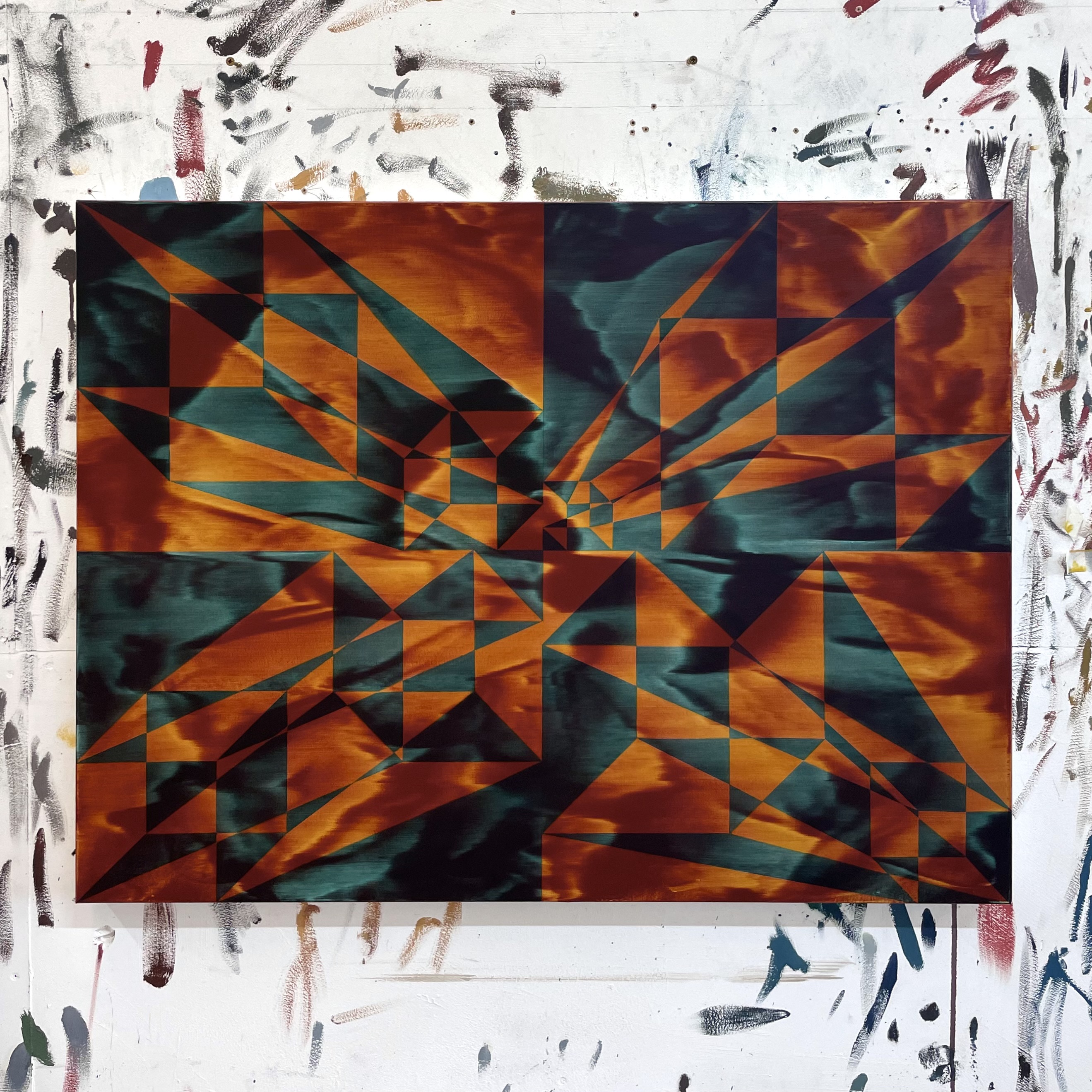 La stratificazione di svariati processi pittorici di addizione come di sottrazione restituisce la complessità visiva: gli strati trasparenti tratteggiano fantasmi di immagini residue. Quasi degli ologrammi simili a vortici spigolosi in cui si rischia di essere risucchiati. Geometrie complesse che si immergono in materia liquefatta e nebbiosa. Tuttavia, materialmente, queste opere sono estremamente piatte (quasi fotografiche) ma presentano l'illusione di profondità claustrofobica e superficiale, una sensazione di oscura profondità pur risolvendosi in pochi micron di dissolvenza.