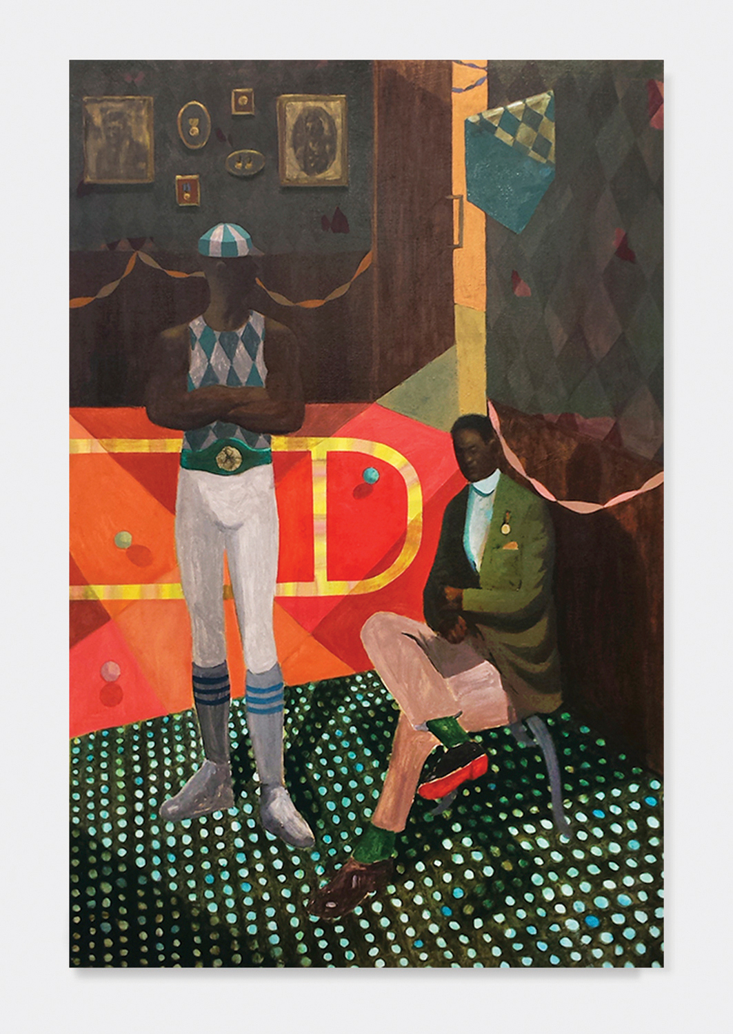 Derek Fordjour, giovane artista afroamericano che vive e lavora a New York, porta per la prima volta in Italia le sue opere. I soggetti sono colorati e in movimento, ma in realtà Derek utilizza le implicazioni economiche e sociali dello sport per mettere in discussione la struttura di potere.