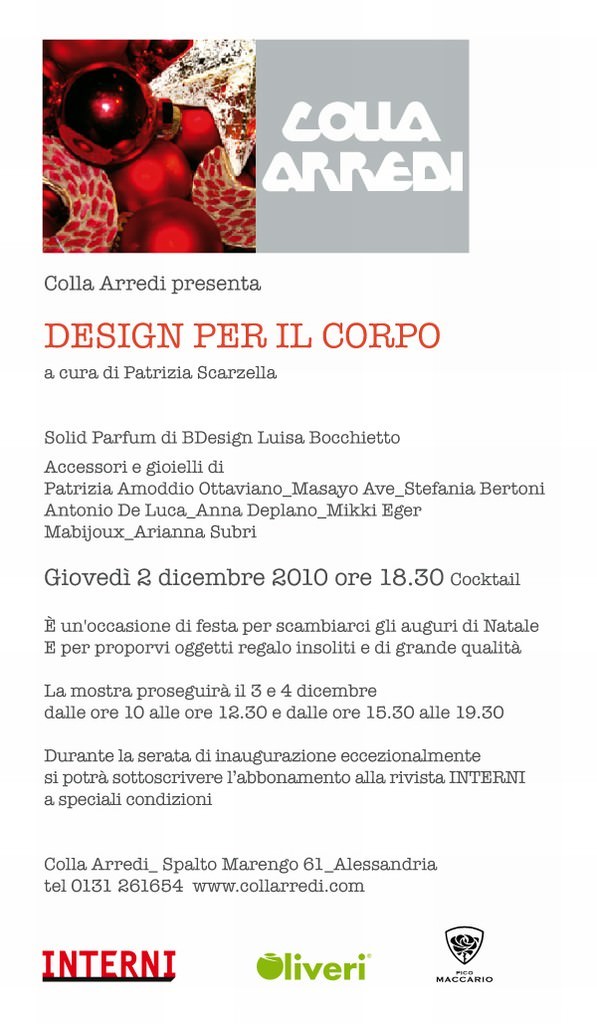 In occasione del prossimo Natale, Colla Arredi di Alessandria, uno degli showroom italiani di design di arredamento piu' qualificati, da’ vita a un evento su un tema che esula dall'arredo ma ha stretti legami con il design.