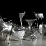 Vanto del catalogo è proporre, riunito per la prima volta, l’intero gruppo scultoreo di SEDUTE MONOZOO prodotto in fusioni a cera persa di alluminio del designer-scultore, ma anche gastronomo, Andrea Salvetti, cosi come la POLTRONA PROUST realizzata e firmata nel 1998 da Alessandro Mendini che, conservata in condizioni impeccabile, è stimata 17.000/20.000 euro, mentre è di 25.000 euro ognuna la richiesta delle quattro poltrone monumentali disegnate da Gaetano Pesce e realizzate da Meritalia, SENZA FINE UNICA: troni realizzati da un unico nastro di pvc policromo avvolto su se stesso fino a divenire strutturale.
