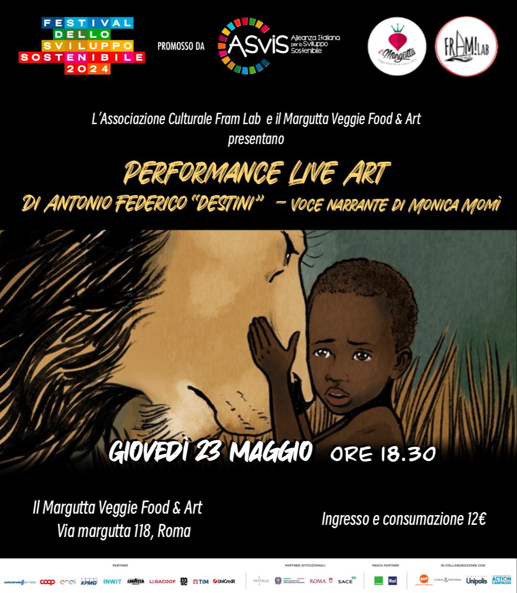 Una performance live del pittore Umanità Illustrata accompagnato da una voce narrante