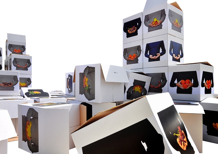 ll risultato di tutto questo ci viene mostrato sottilmente dall‘ultima installazione In – Cubo, che vuole essere una plastica rappresentazione della trasformazione finale provocata dalla patologia dell’azzardo. Il “box”, il cubo di cartone, rappresenta sulle sue facce, la simbologia del gioco delle slot; gli scatoloni sono i giocatori che dentro sono vuoti, e di loro la resta un involucro, annullati nel proprio esasperante desiderio di trovare “sorte” benigna: è diventata involucro in attesa di ricevere un “senso” da un destino che non c’è. La persona è diventata il “dado” da gioco e ciascuno si ritrova ammonticchiato l’uno sull’altro in una serie di cose svuotate, senza senso e coscienza, in una serie di combinazioni casuali di segni senza fortuna e senza speranza di rimedio o senso: si ritrova cioè oggetto del nonsenso, immagine dell'inesistenza del destino stesso.