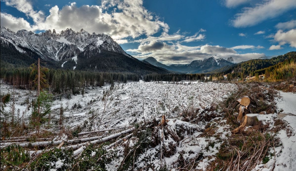 La forza del vento, con la velocità e potenza di un uragano, ha distrutto vastissime estensioni boschive, divelto in ogni dove alberi giovani e centenari ; la “bomba” d’acqua ha simultaneamente dilavato i territori montani e di pianura, fatto rapidamente defluire macerie vegetali e fanghi nei grandi e piccoli corsi d’acqua.